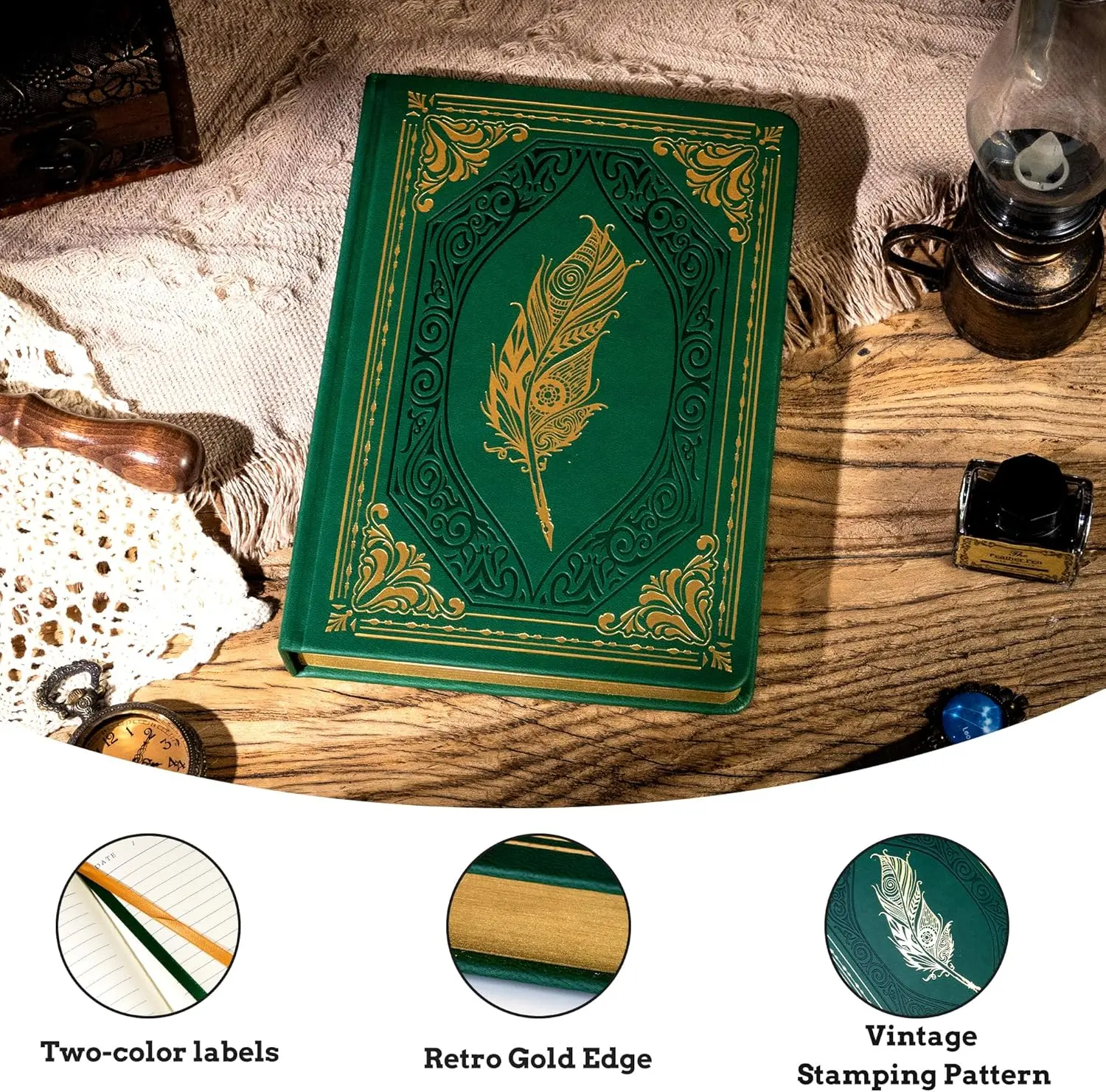 VINTAGE LEATHER JOURNAL - Leather journal with foil stamping pattern and embossed design, the sense of seniority is immediately highlighted; vintage gold edges, increase the mystery of the diary; hard cover and spine, to protect the inner pages from damage, binding is more solid, texture is stronger.