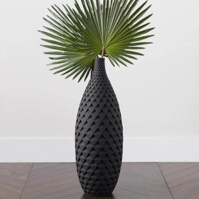 A stunning accent even when it's not holding blooms or branches, this floor vase is made from lightweight resin with a textural scalloped design and matte black finish.