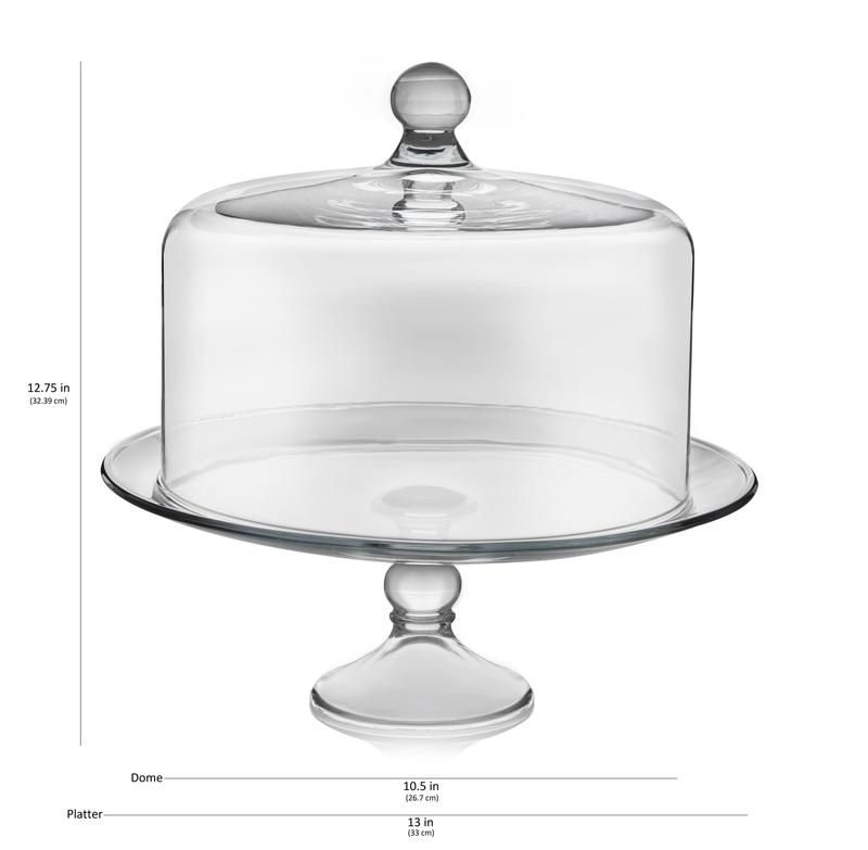·Includes 1, 13-inch diameter footed glass cake stand and 1, 10.5-inch diameter glass cake dome