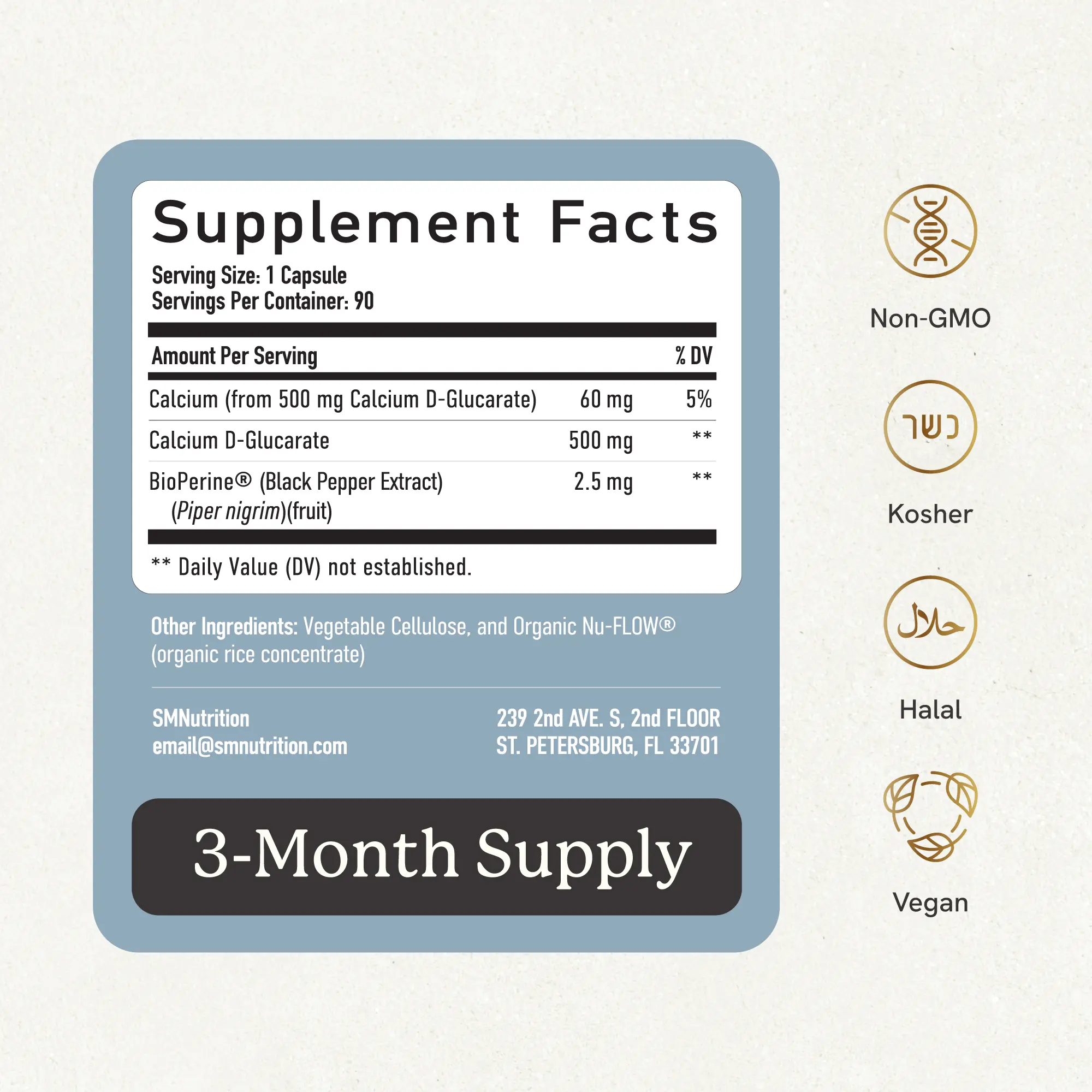 SMNutrition Calcium D Glucarate is a reliable supplement for supporting overall health and detoxification. The capsules are easy to swallow and have no unpleasant scent. The packaging is durable and keeps the product fresh. I noticed positive effects within a few weeks, particularly in my energy levels and general well-being. It’s versatile and fits well into daily wellness routines. Overall, it’s an effective and high-quality product.