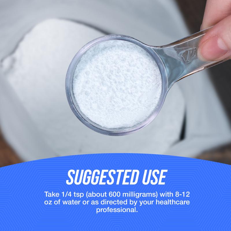 Suggested Use: Take 1/4 tsp (about 600 milligrams) with 8-12 oz of water or as directed by your healthcare professional.