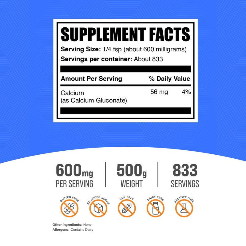 Revitalize your body's core with Calcium Gluconate powder from BulkSupplements, the perfect choice for improving your overall health. Boasting a hefty dose of calcium, it supports bone strength and fortifies teeth.