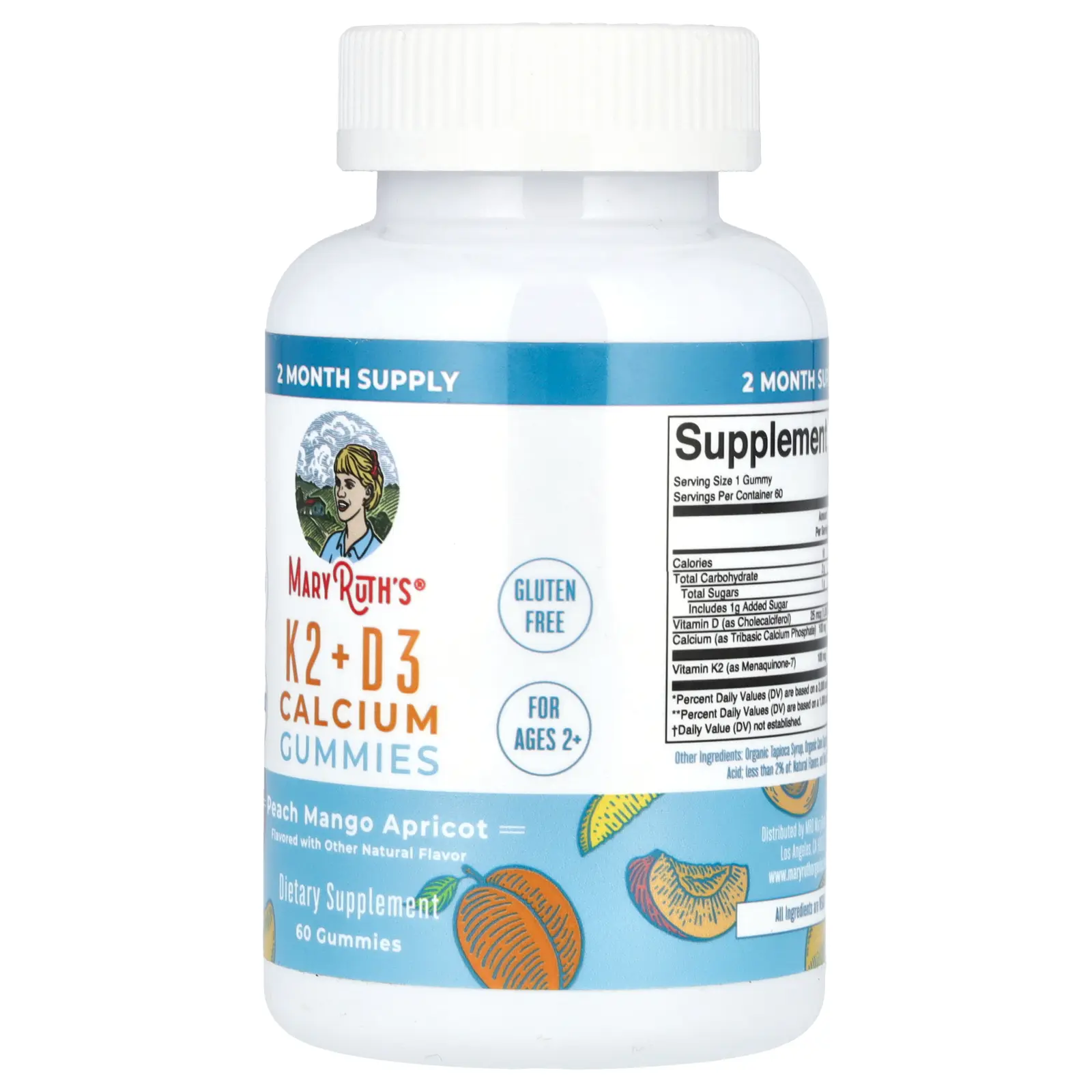 MaryRuth's K2 + D3 Calcium Gummies, Peach, Mango and Apricot, 60 Gummies