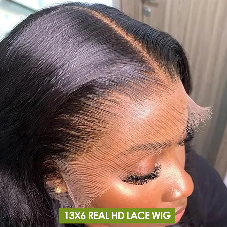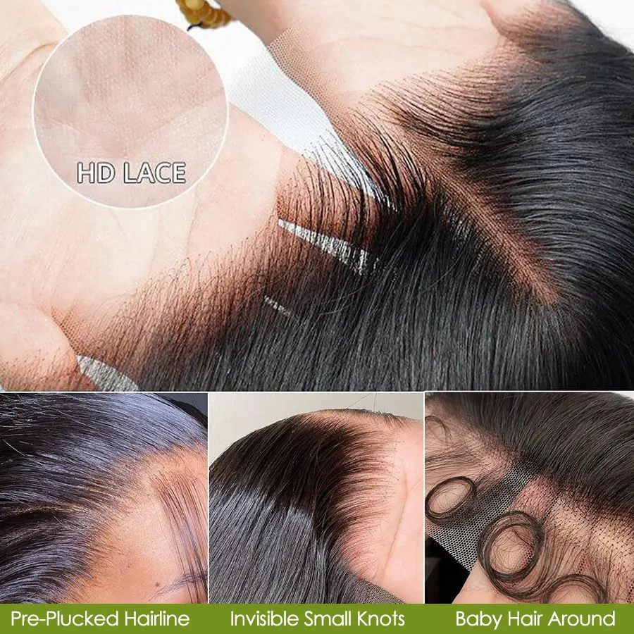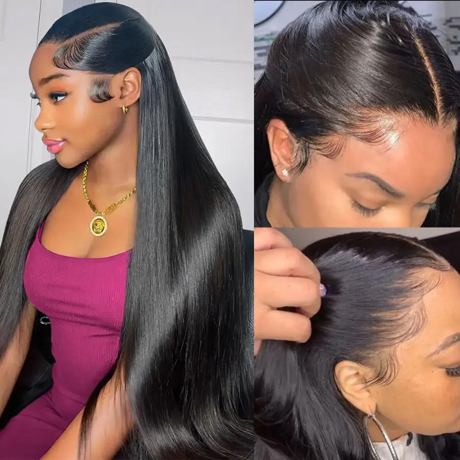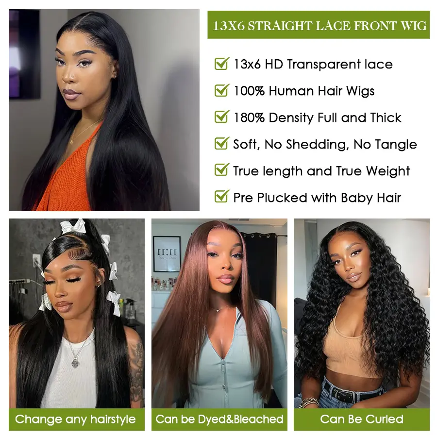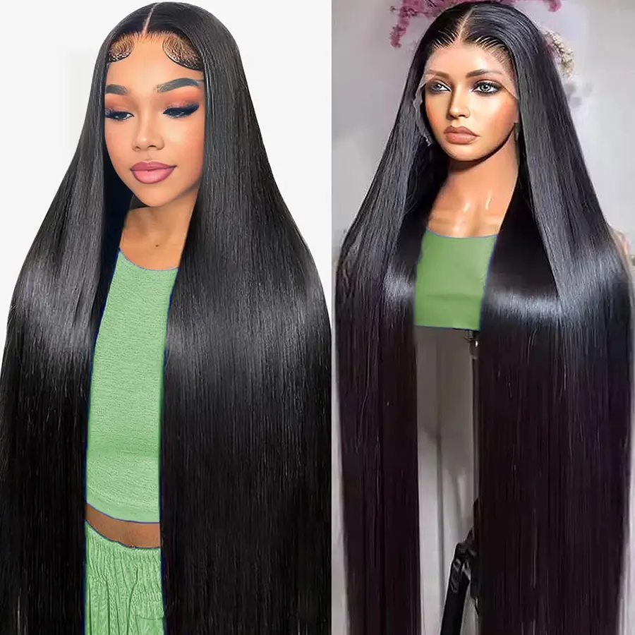 5. Caleber Hair 32 Inch 13x6 Lace Front Wigs Human Hair 200 Density Straight HD Lace Front Wigs Pre Plucked Straight Glueless Human Hair Wig With Drawstring for Women