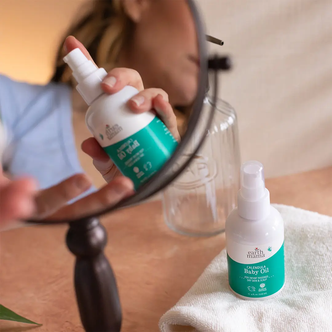 Gentle as a mama’s touch, Earth Mama’s three-ingredient Calendula Baby Oil is formulated to be safe for newborn skin and scalp. With light, easily absorbable grapeseed oil infused with organic calendula, as well as organic jojoba oil, a plant that closely resembles the skin’s moisturizing sebum, it’s naturally unscented. Chosen by hospital NICU nurses and physical therapists for infant massage, Calendula Baby Oil is a favorite for the entire family, including faces and bodies, after tub time or a shower.