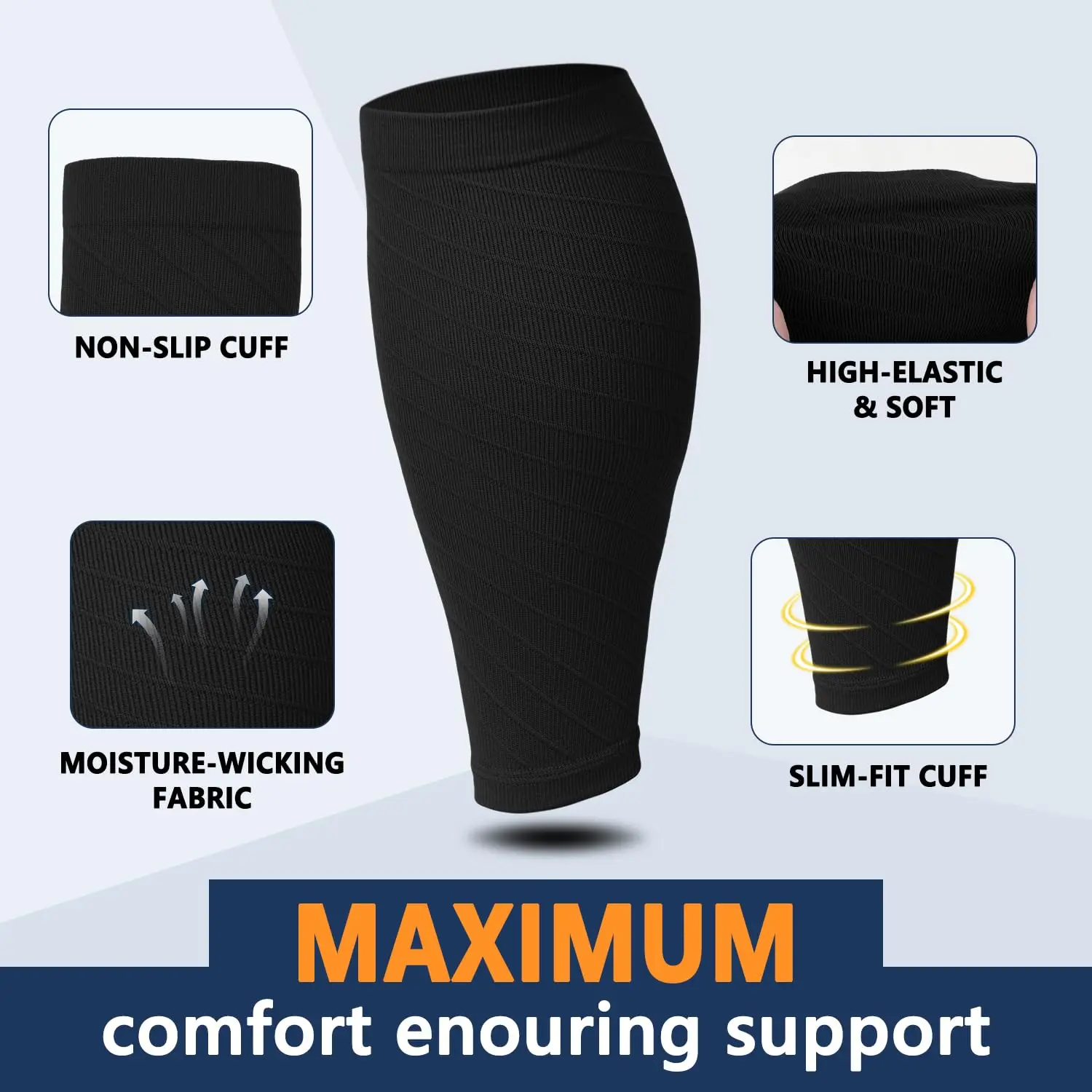 Ideal for all sports, these sleeves stabilize calves, reduce muscle oscillation, and prevent varicose veins and shin splints. Suitable for running, hiking, fitness, soccer, marathon, jogging, cycling, basketball, and travel.