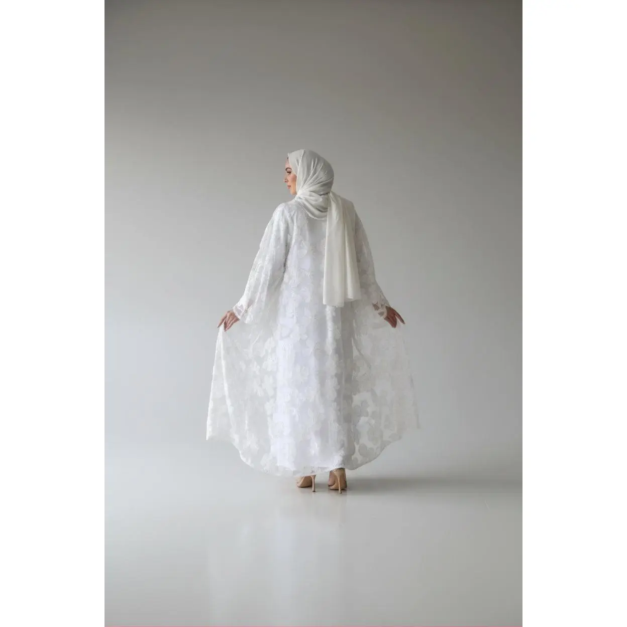 Each Caliana Abaya includes a matching inner dress for full coverage, while the outer layer drapes effortlessly over the body. The wide sleeves and flowing cut create graceful movement from every angle.