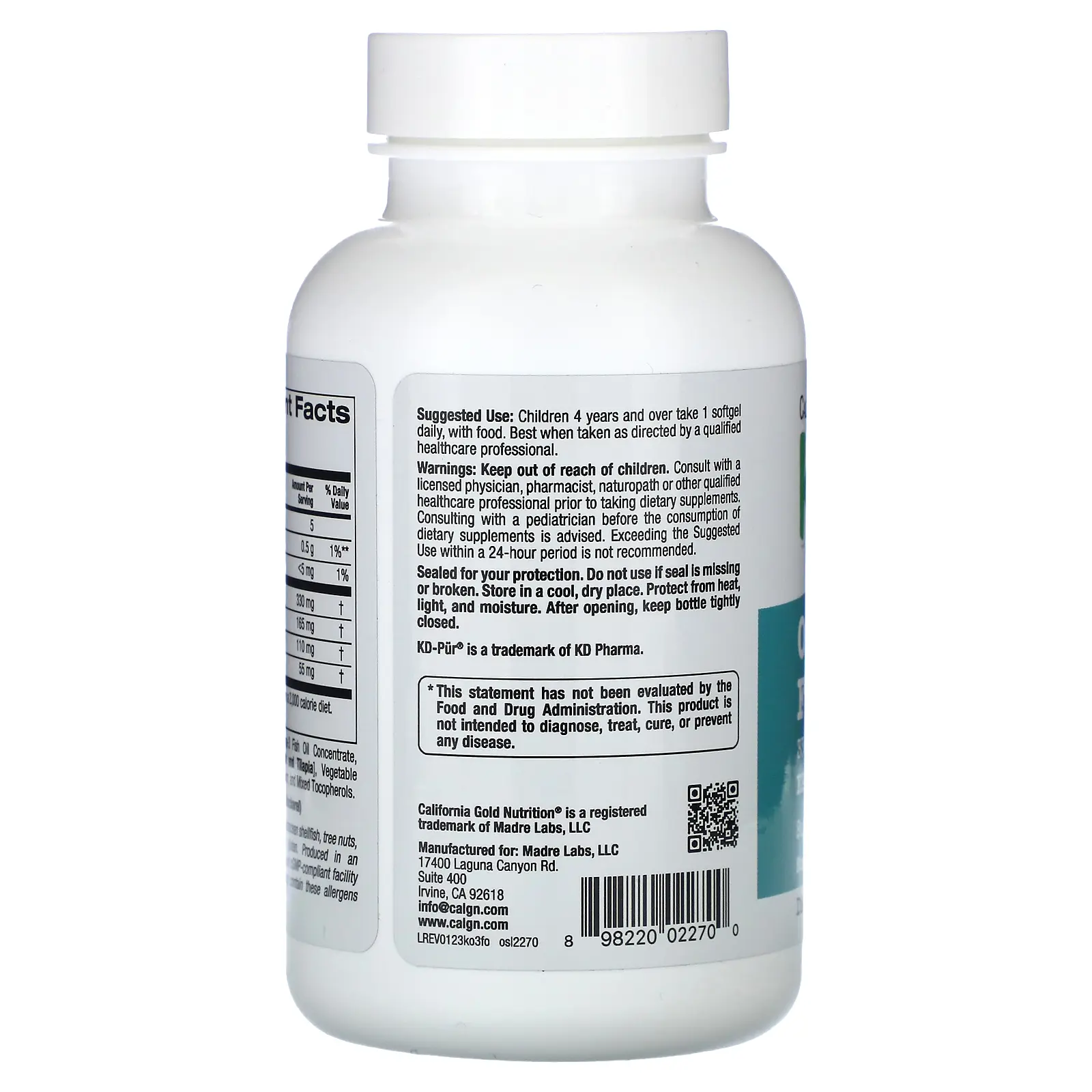 California Gold Nutrition Kid’s Omega-3 Fish Oil, Natural Strawberry, 60 Fish Gelatin Softgels
