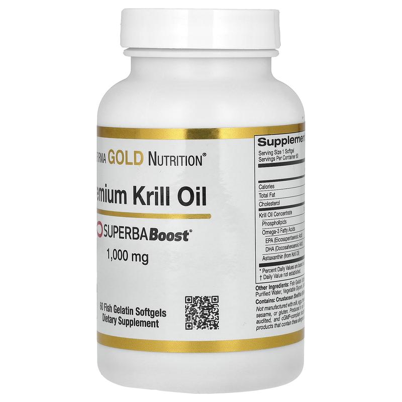 California Gold Nutrition Premium Krill Oil with SUPERBABoost, 1,000 mg, 60 Fish Gelatin Softgels