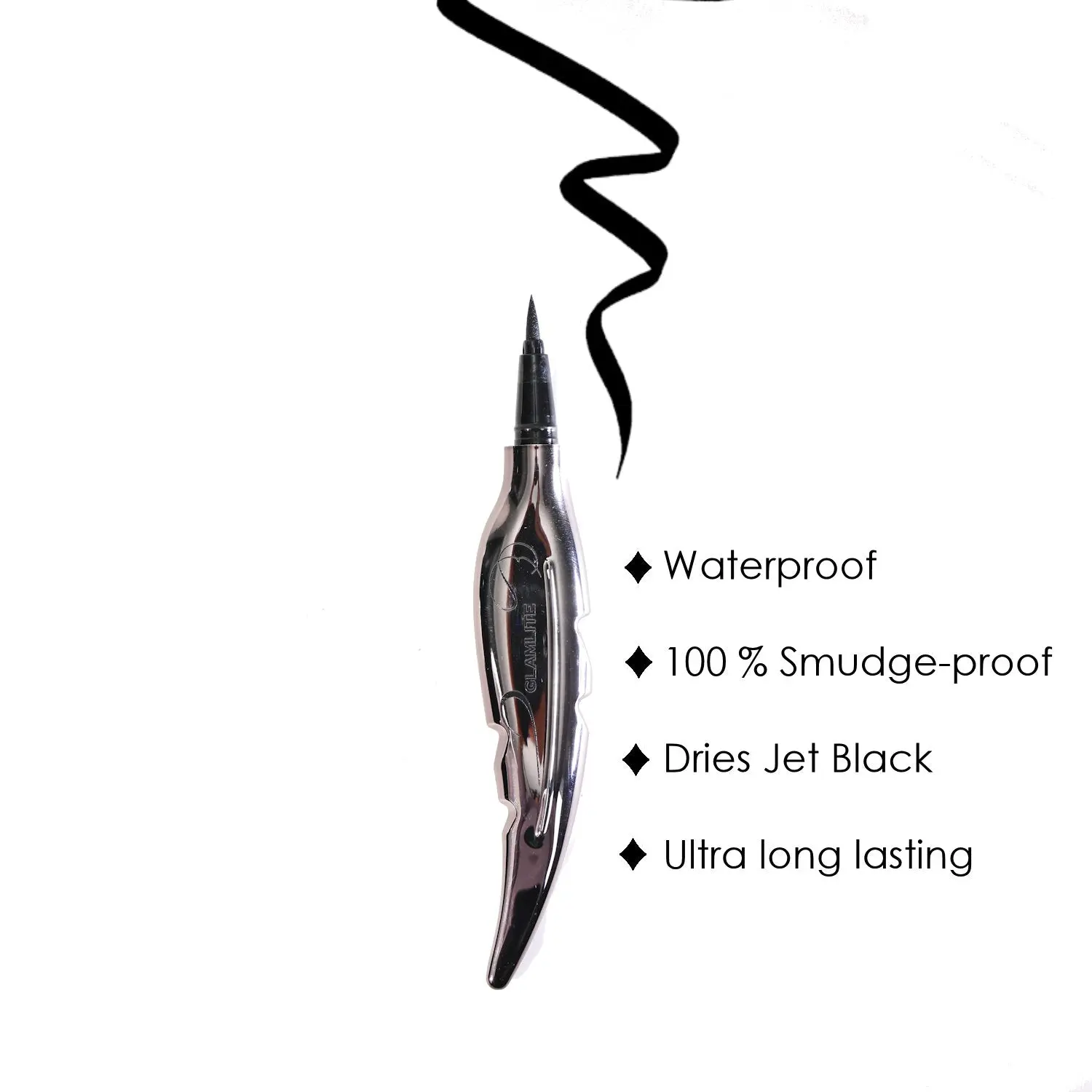 This eyeliner is not waterproof as they show in the ad, but it easy to use and had a good pigmentation, looks 100% black.