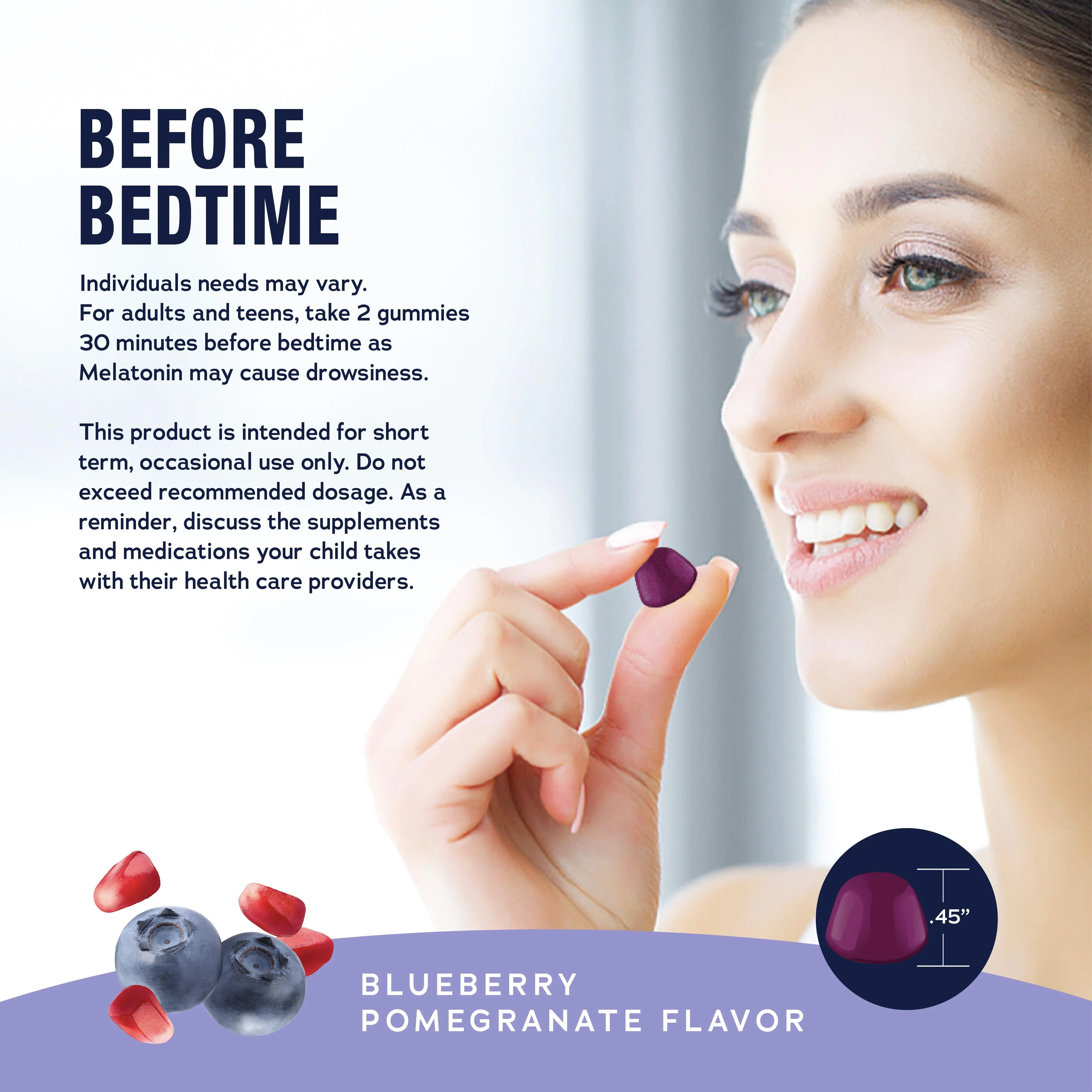 I use these gummies every night... about 30 minutes before I go to bed. They work very well and help me sleep through the night