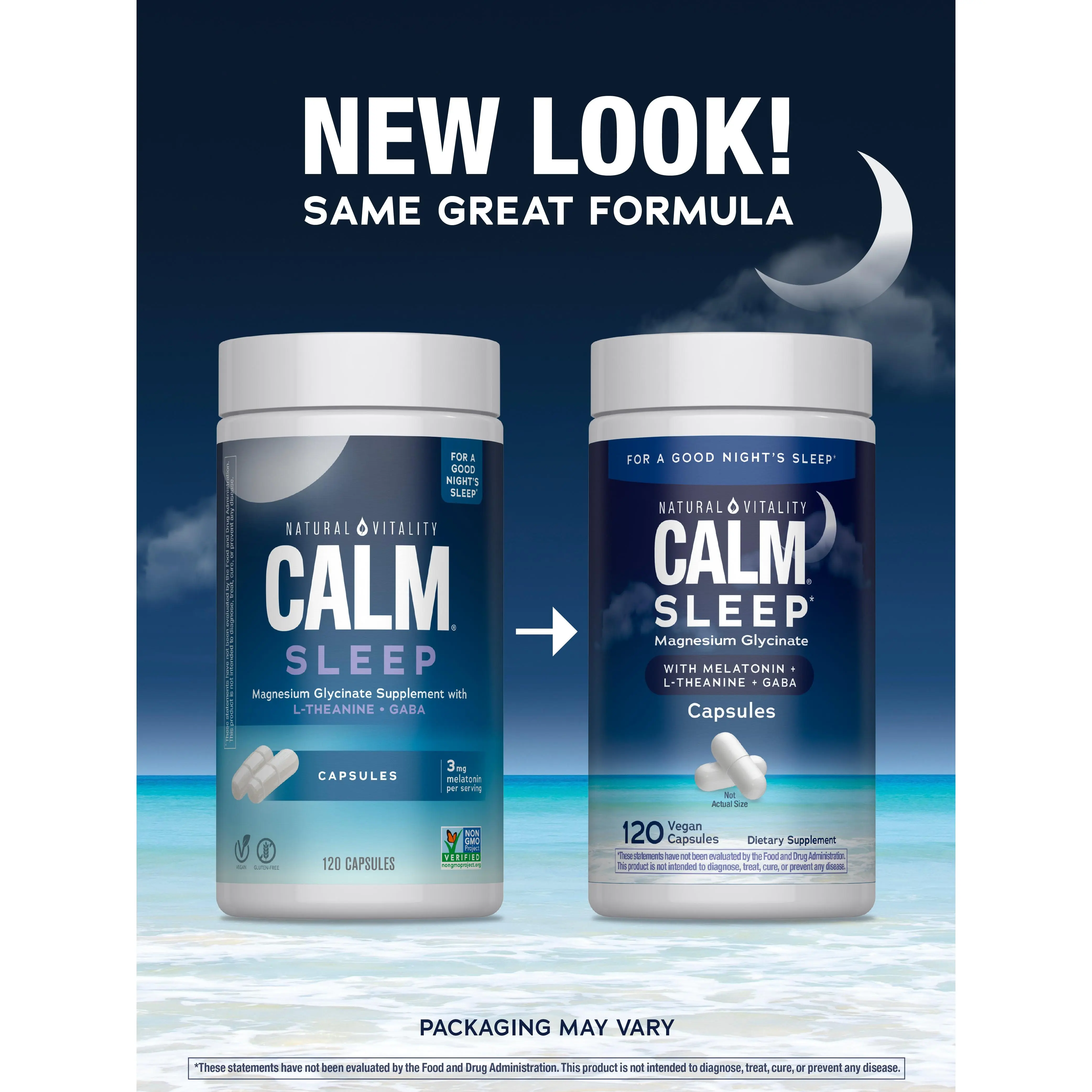 CALM Sleep Magnesium Supplement - With Melatonin, L-Theanine, & GABA - Gluten Free, Vegan, Non-GMO - 120 Capsules