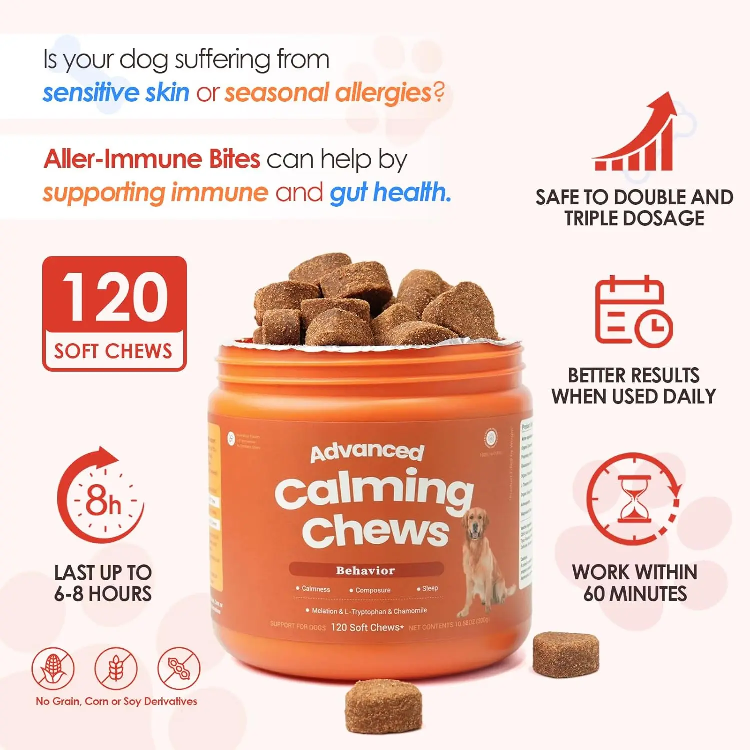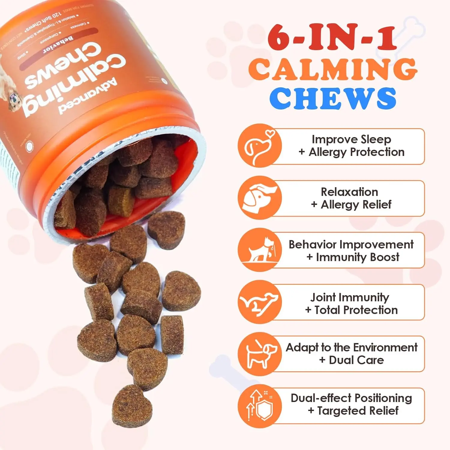 ·CALMING SUPPORT: Our dog calming chews are crafted to help dogs manage everyday stress and hyperactivity, promoting a sense of relaxation and comfort for happier pups