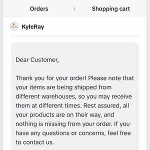I have never received my full order although it’s stating that my items were all delivered. There is no indication or tracking that anything else is coming. I reached out to the seller and he’s stated that it’s coming separately, I have still not received the products I paid for & it’s weeks later