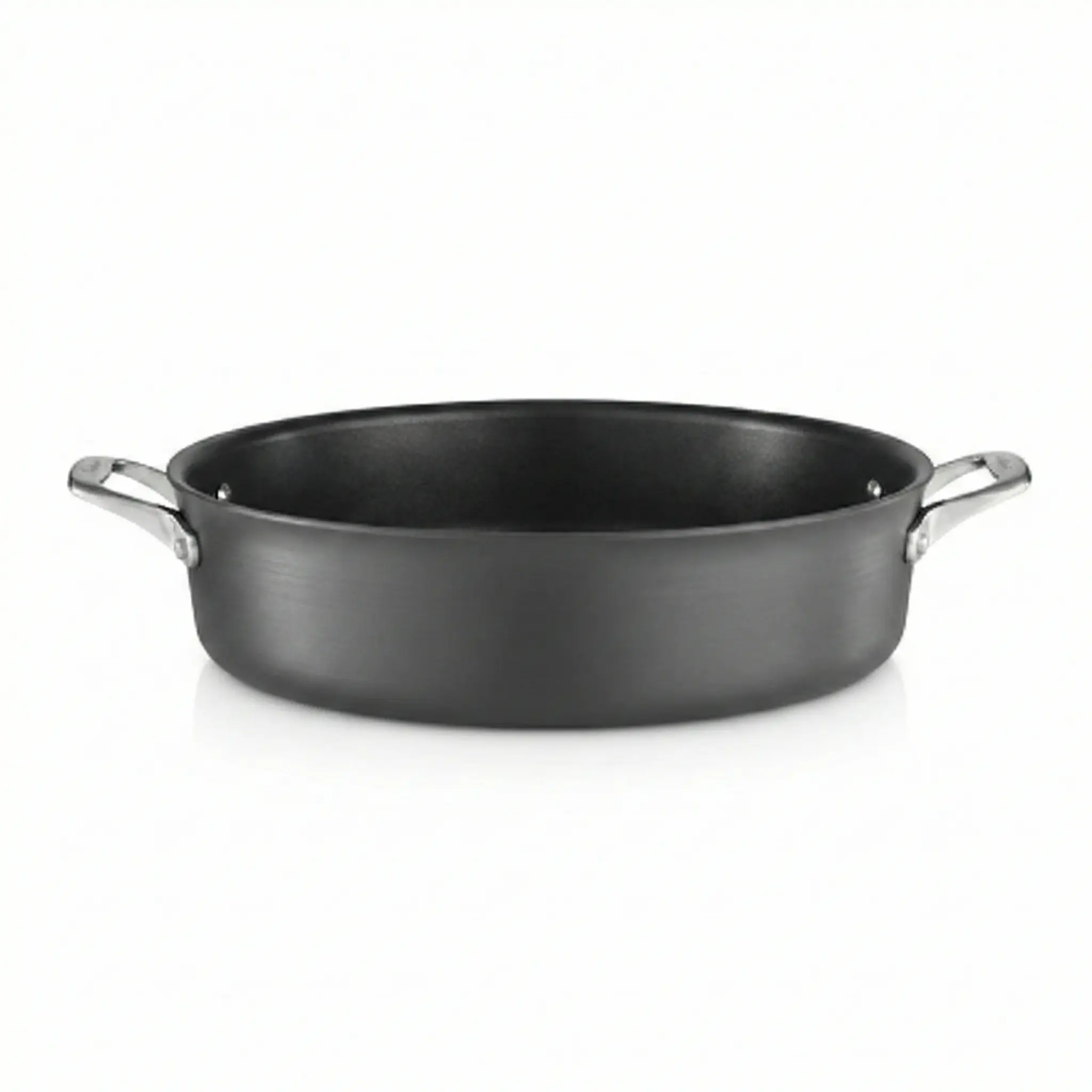 Featuring MineralShield nonstick technology, Calphalon Premier Space-Saving Hard-Anodized Nonstick Cookware is now 5x more durable than before when compared to the previous generation of Calphalon Classic. This nonstick everyday cooking pan delivers long-lasting performance for effortless food release, so you can cook with confidence and serve even the most delicate food with ease. This space-saving line also securely stacks to save 30% more space than its non-stacking counterparts. Thanks to their unique design and flat glass covers, the pots and pans stack and nest in any order when stored on other items of the same diameter. A 3-layer nonstick interior is made with some of the Earth's hardest minerals to withstand metal utensils and everyday use and the hard-anodized exterior is dishwasher-safe for easy cleanup. They are oven-safe up to 450 degrees F, able to go from the stovetop into the oven for heating and cooking versatility. Elevate your cooking experience with Calphalon Premier, and enjoy exceptional performance with endless possibilities. Designated Chemical Disclosure: This product contains PTFE, Aluminum, Stainless Steel (Iron, Chromium, Nickel, Manganese, Copper, Phosphorus).