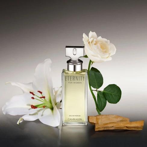 Calvin Klein Eternity Eau De Parfum for Women – a timeless floral, green, and woody fragrance in an elegant glass bottle.