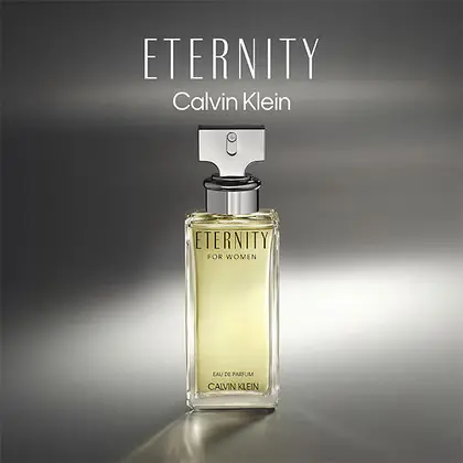 The fragrance opens with a fresh burst of citrus and green notes, leading into a romantic heart of lily, jasmine, and rose. It concludes with gentle woody tones and soft musks for a graceful finish. Presented in a tall glass bottle with a silver cap, Eternity embodies sophistication and lasting beauty.