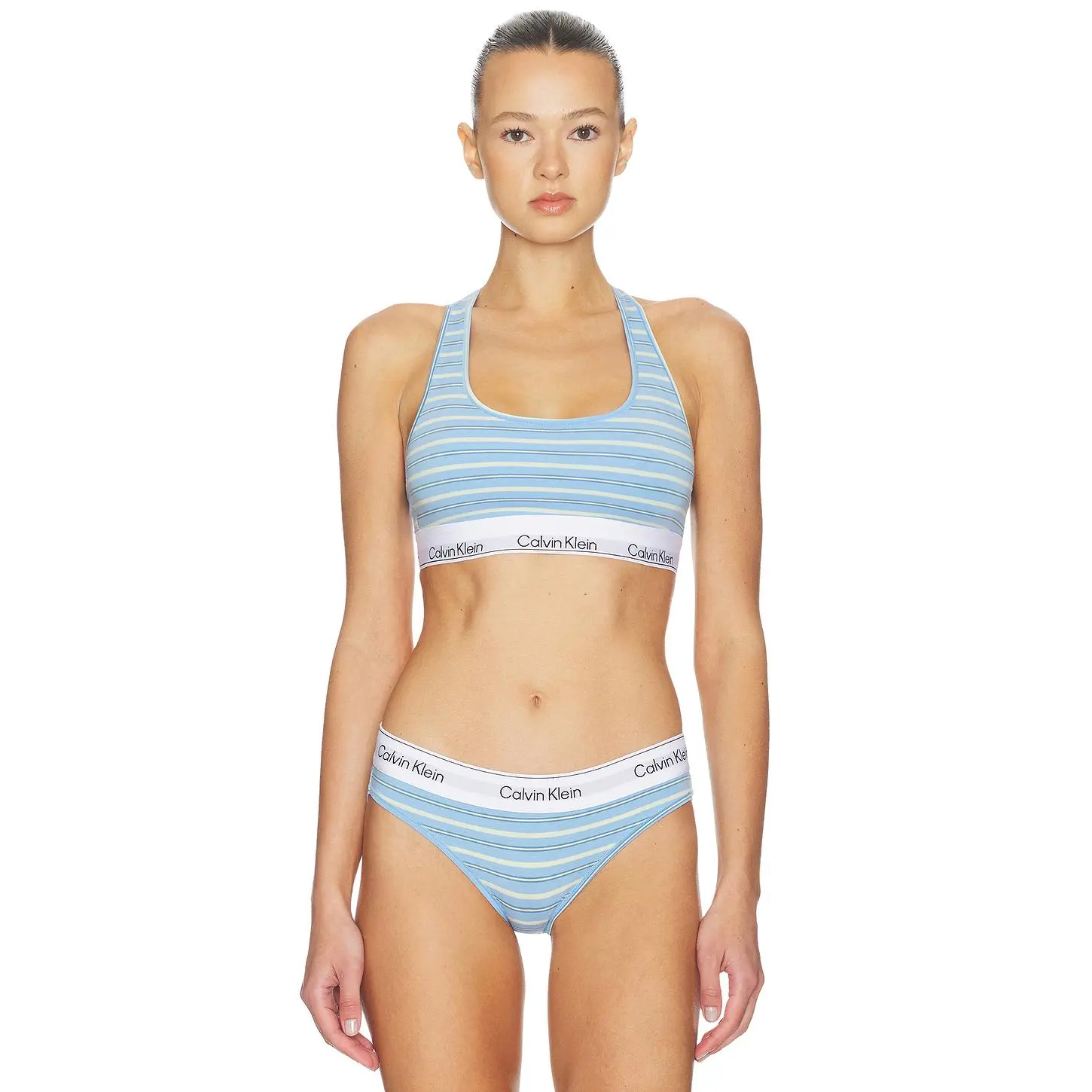 5. Calvin Klein Underwear Unlined Bralette in Pulse Stripe Blue Descent