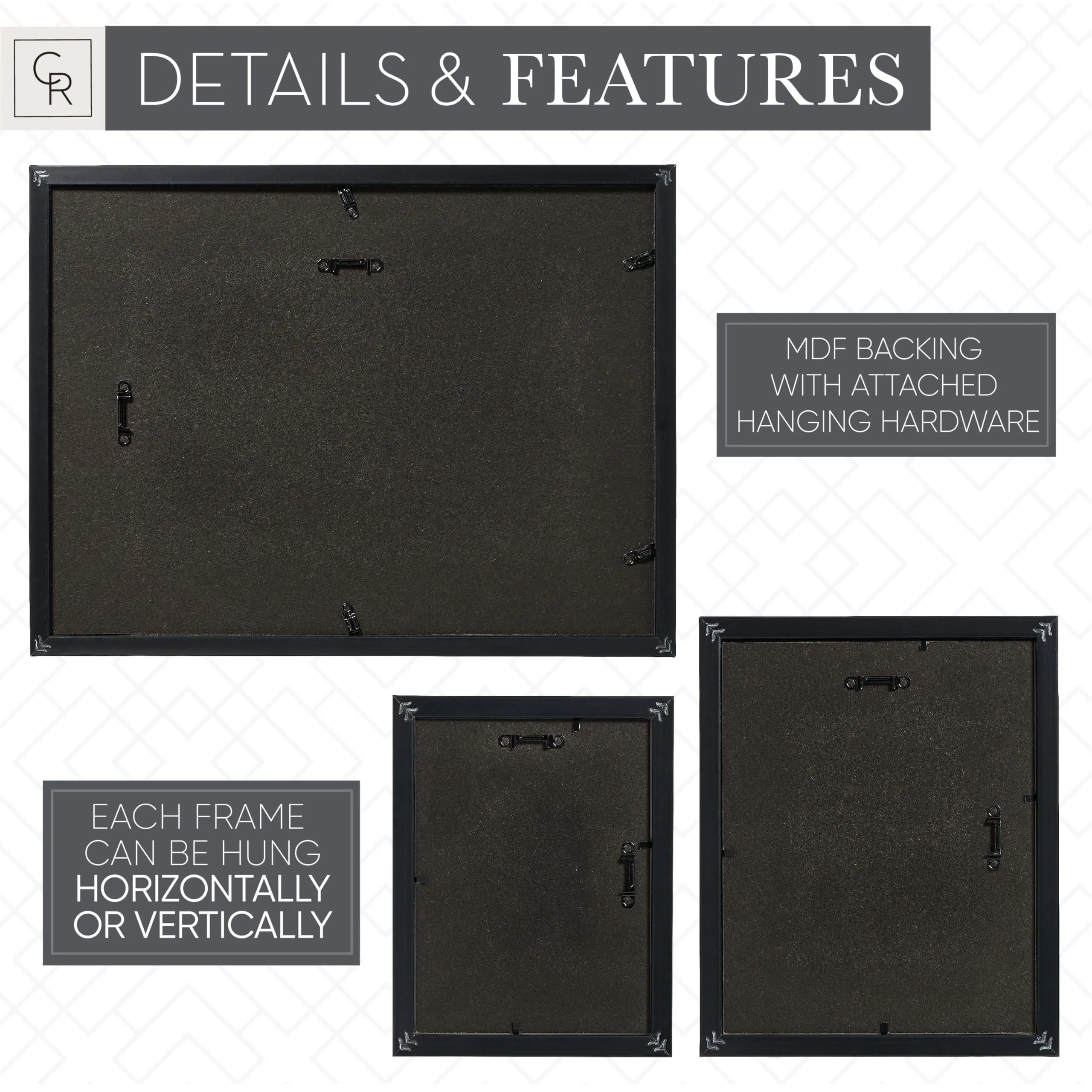 Crafted with attention to detail, each frame features a classic yet modern design that complements any interior aesthetic. The frames are finished in a sleek color with subtle accents, adding a touch of elegance to your living room, bedroom, or office space.
