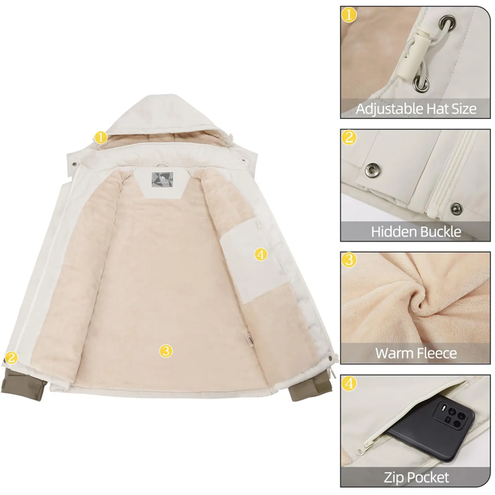 Standing collar, windproof hood + double front opening design, paired with windproof fabric, effectively preventing cold air from entering; waterproof index up to 10,000 mmH₂O!