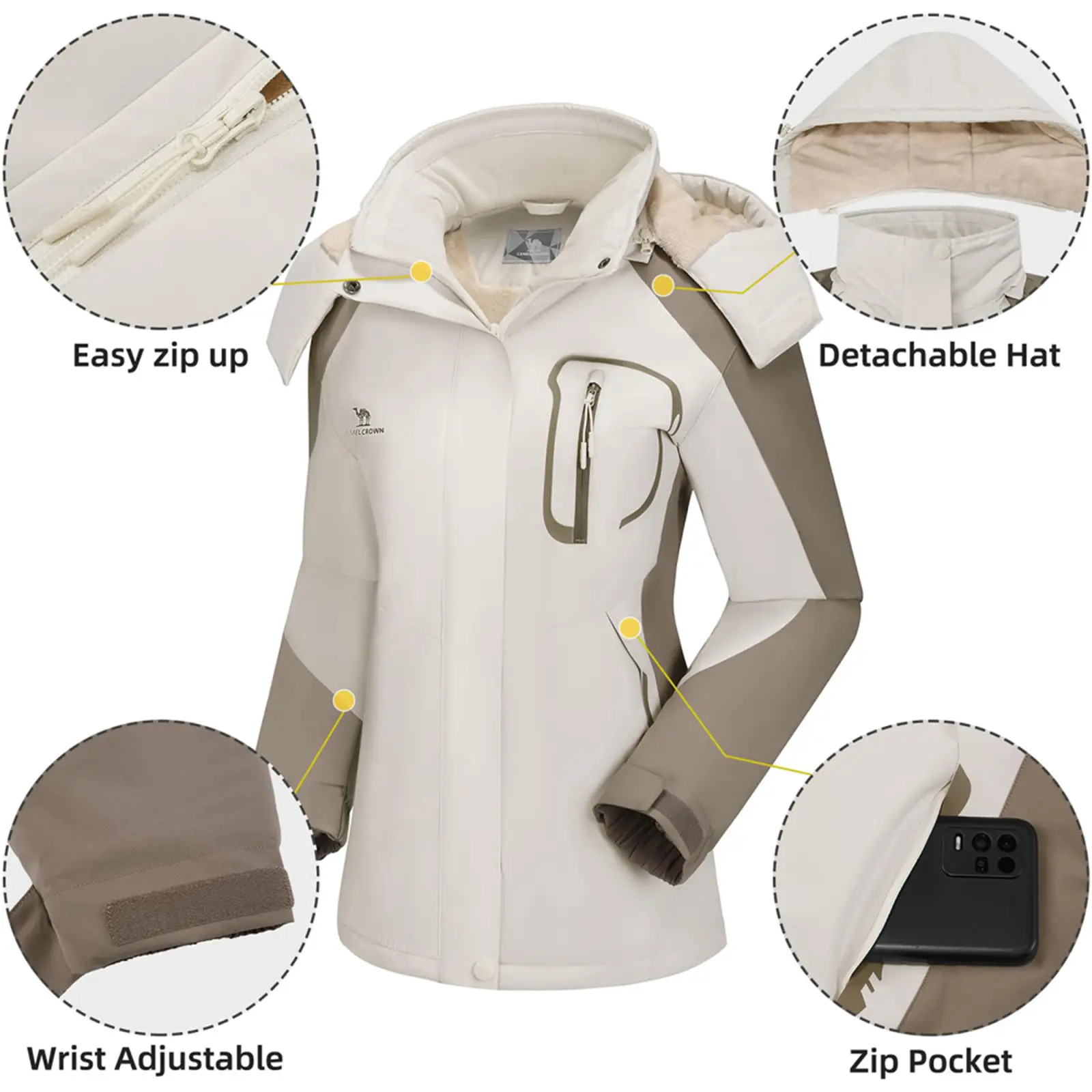 Multiple waterproof zipped pockets both inside and outside, allowing easy storage of items such as ski goggles, mobile phones, and keys. Very convenient and practical!