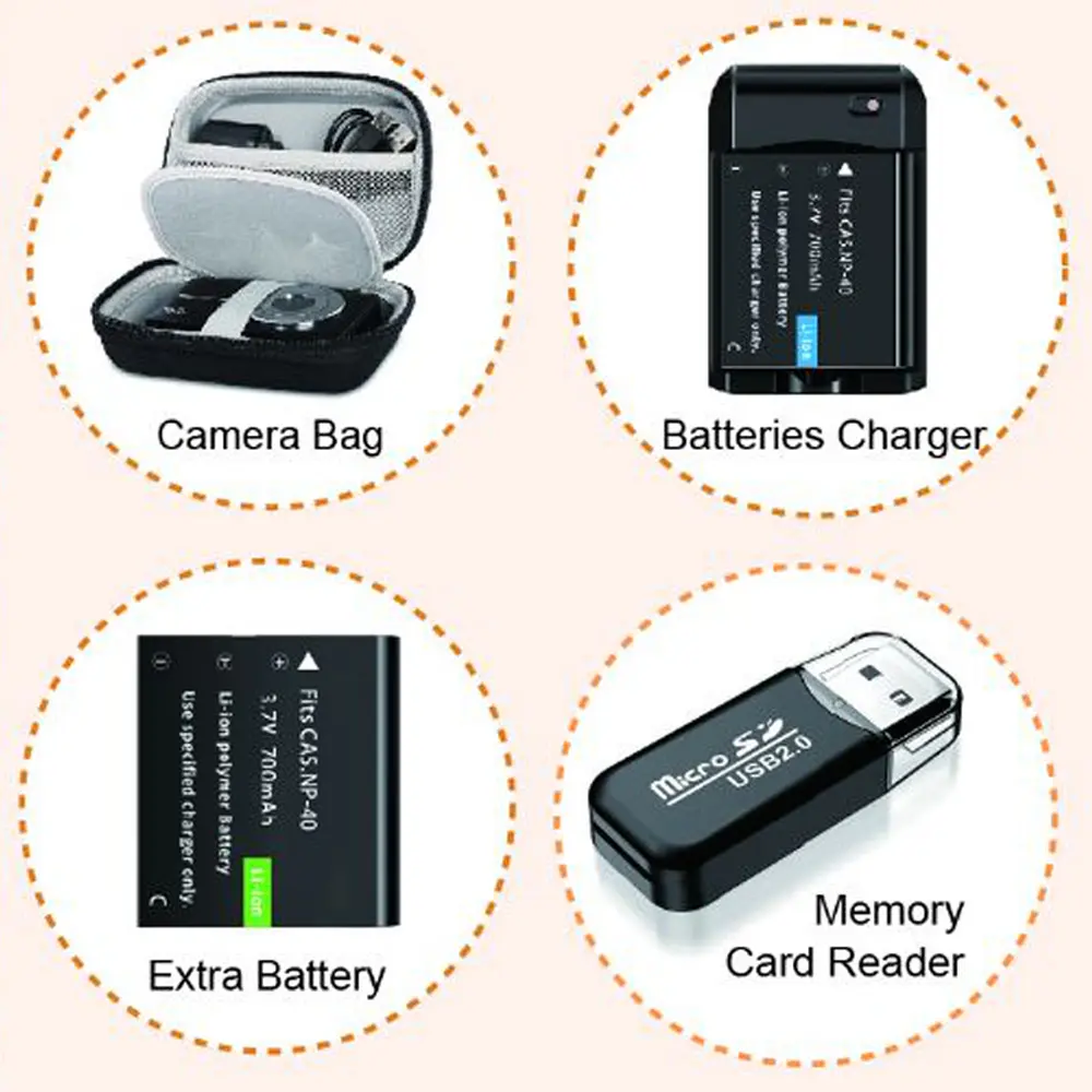 Ready to up your photography game? The Camkory Accessory Kit has everything you need to keep shooting without a hitch. Imagine never running out of battery mid-session with an extra rechargeable battery and fast charger included. Keep all your gear neatly packed in a stylish, durable camera bag that’s built to protect. Plus, transfer your photos in a flash with the high-speed memory card reader. Whether you're an amateur or a pro, this kit is compatible with all Camkory cameras and makes a perfect gift or personal upgrade. Inside the box, you'll find the camera bag, battery charger, extra battery, and memory card reader—all designed to help you capture stunning moments effortlessly. Grab your kit today and get ready to shoot like a pro!