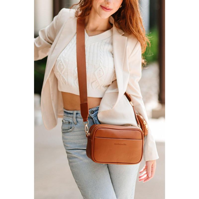 Made from soft but structured vegan leather, the Signature Camera Bag holds its sleek shape with ease. On the outside, you'll find a front slip pocket perfect for holding smaller essentials and a back zippered pocket that easily stows your phone. The organization continues inside with three slip pockets to keep everything in its place.