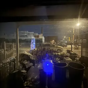 Miren dos fotos de diferentes angulos y es de noche .
