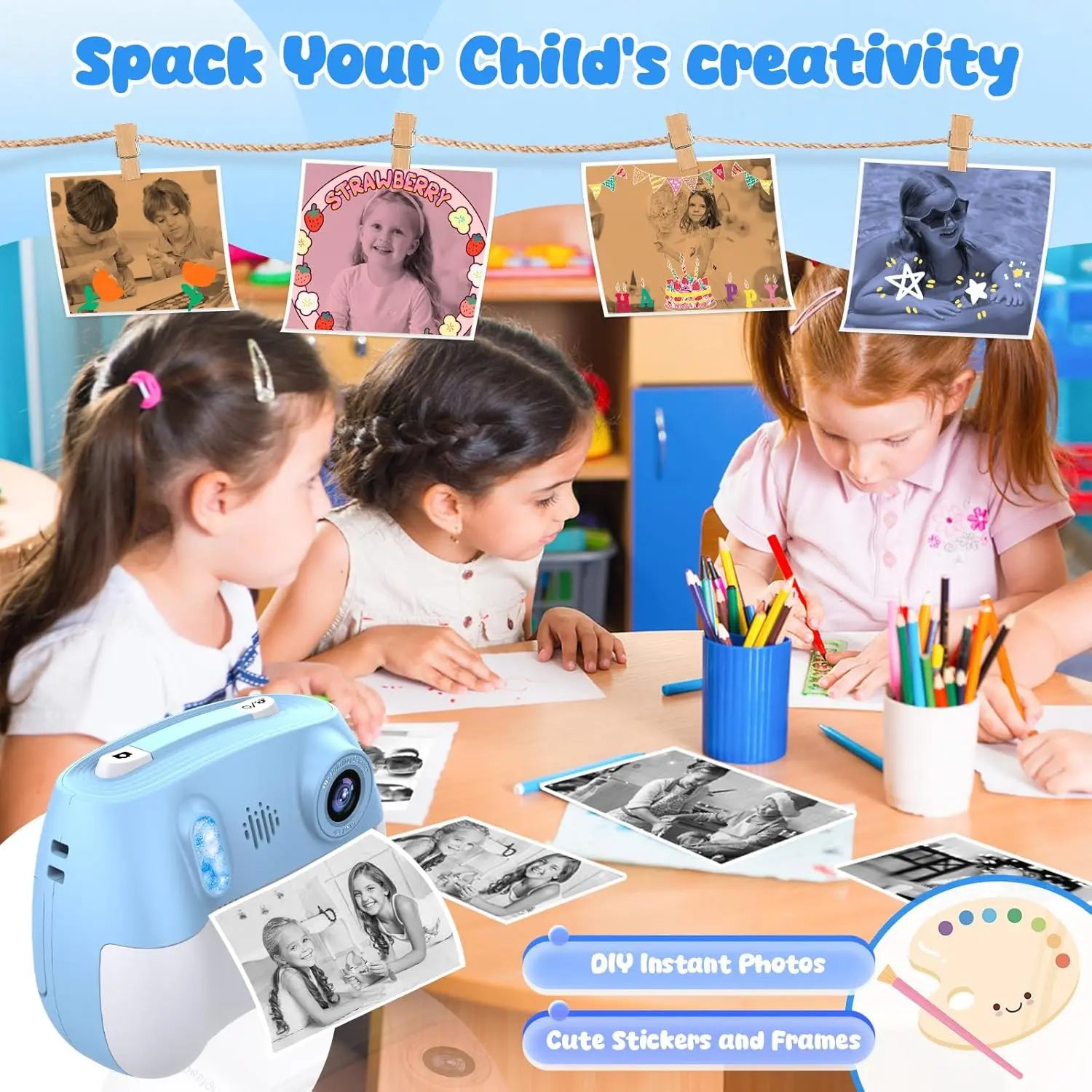 Versatile Play Options - Supports photo printing, outline drawing printing, 9 cute frames, and filters. Lets your capture and print their favorite photos in seconds - unleash imagination and creativity freely!