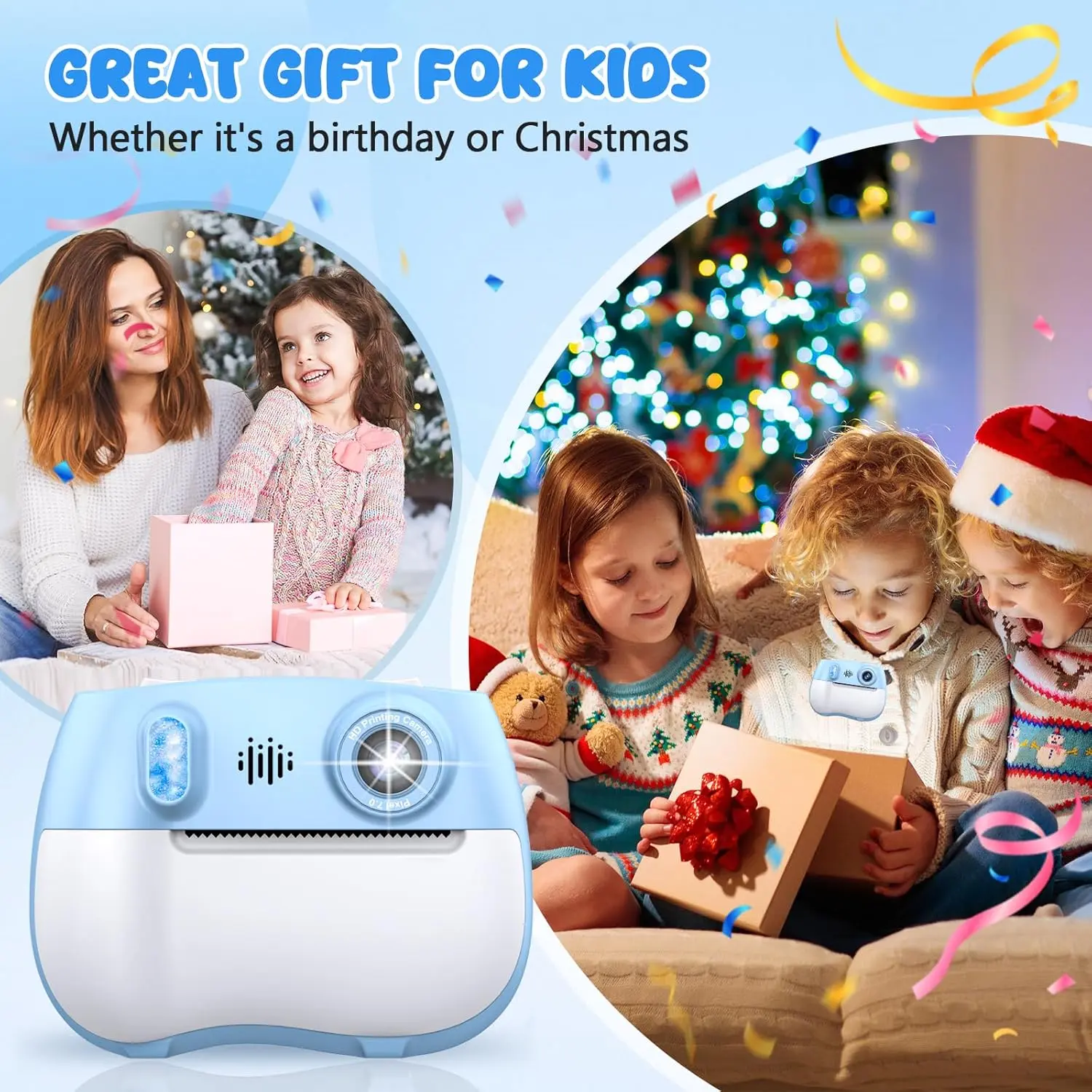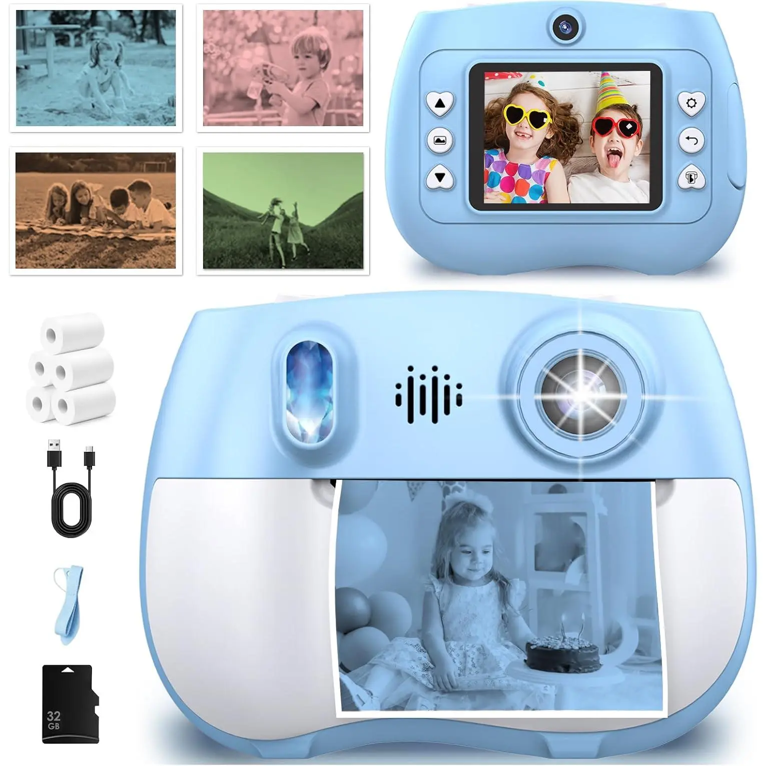 Multi-Function & High Configuration - Dual-lens design (1080P rear camera + selfie camera) with 2.4" color screen, 16x zoom, instant printing, 2 print modes, video recording, , music, and video playback. Meets needs of young explorers!