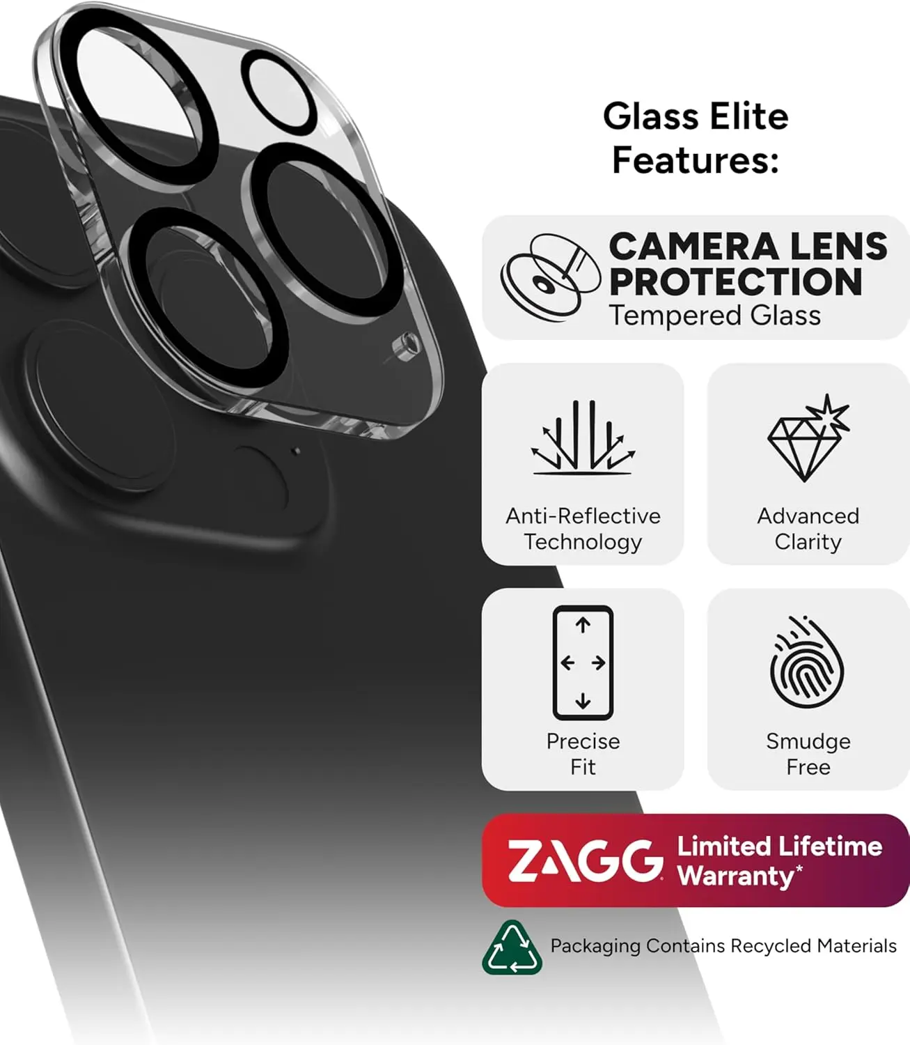 5. ZAGG Glass Elite Anti-Glare Lens Protector for iPhone 16 Pro / Pro Max Camera