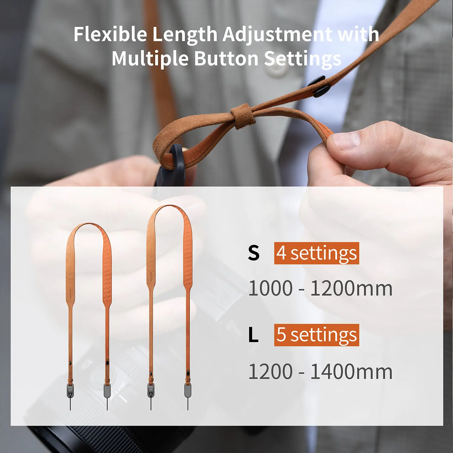Comfort is key, and the soft TPE shoulder pad is breathable and elastic, perfect for all-day wear without irritation. Plus, the urban retro style with button-adjustable length (from 1000 to 1400mm) means it fits just right and looks sharp whether you’re shooting street scenes or traveling.