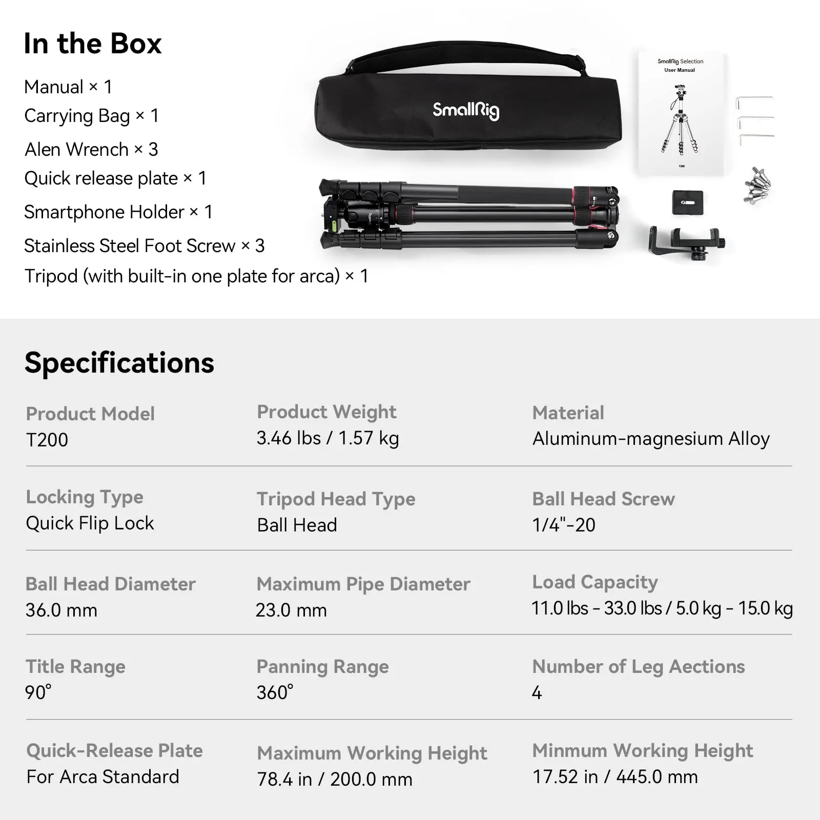 ·INNOVATION and PACKAGE INCLUDES: Different from other tripods, this tripod has three 1/4" threaded holes added to the bracket, which can meet the needs of external magic arms, mobile phones, monitors, etc. Package Include : Tripod*1, Smartphone Holder*1, Carry Bag*1, Alen Wrench*3, Maunual*1, Stainless Steel Foot Screw*3, Quick release plate*2(one is equipped on tripod, another is in carry bag).