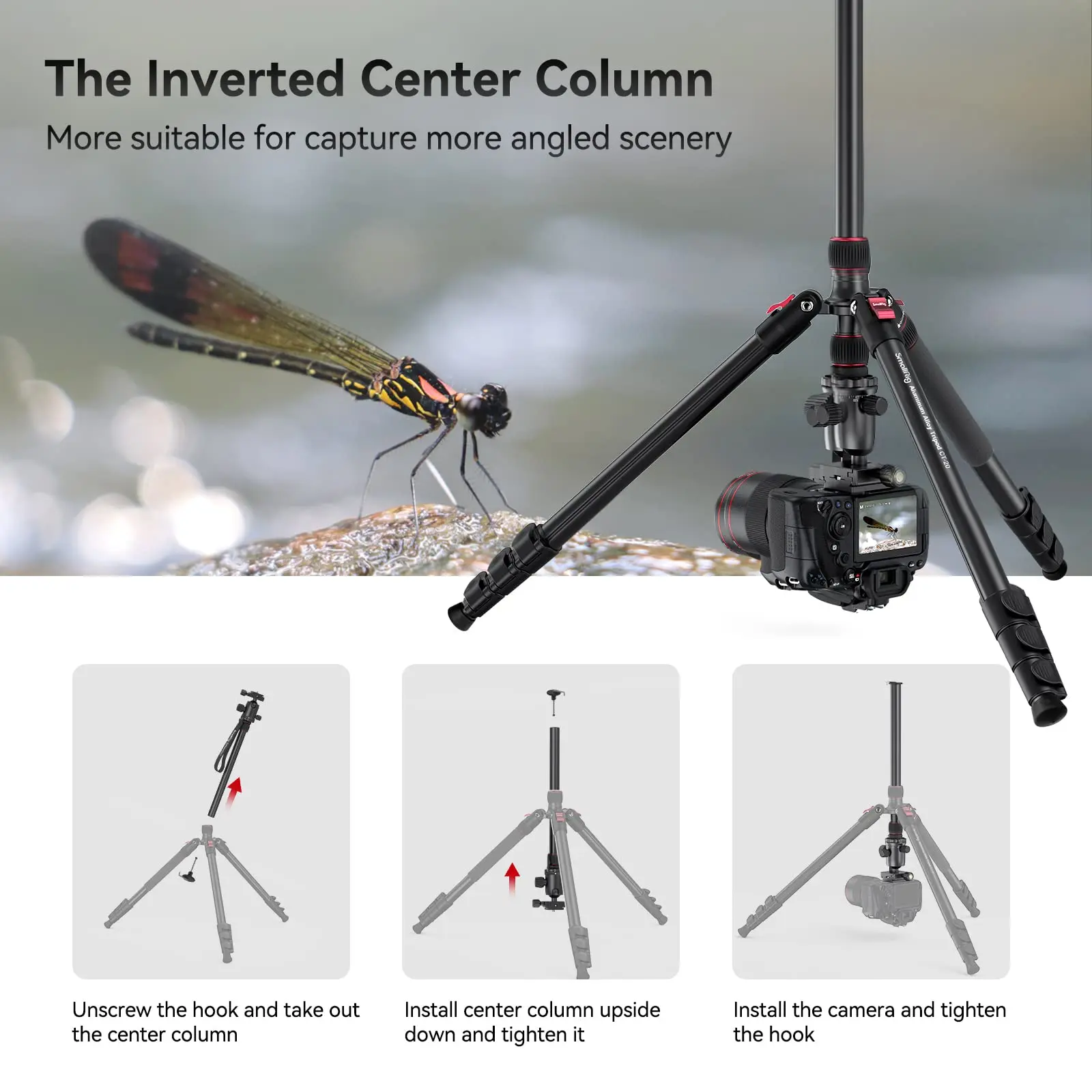 ·2-IN-1 TRIPOD & MONOPOD: The aluminium tripod can be easily transformed into a monopod or walking stick, making it an ideal companion for hiking or travelling. The central pole can be inverted to allow for low-angle shooting and macro photography. The 4-section column legs with 3 quick-release flip-locks allow you to adjust the working height from 18.5" to 78.7" in seconds. The folded 19.6" of size makes it easy to take anywhere for outdoor photography.
