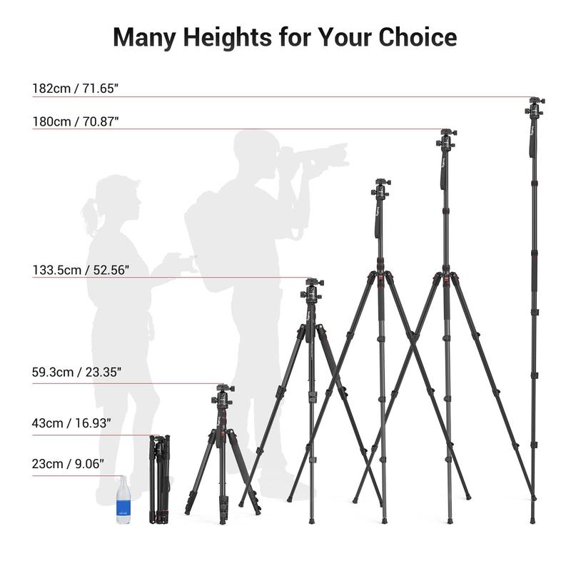 ·Height Adjustable: 4-section column legs with 3 quick release flip-locks allows you to adjust the working height from 16" to 71" in seconds. 16.9" folden size is easily took to anywhere for outdoor photography.