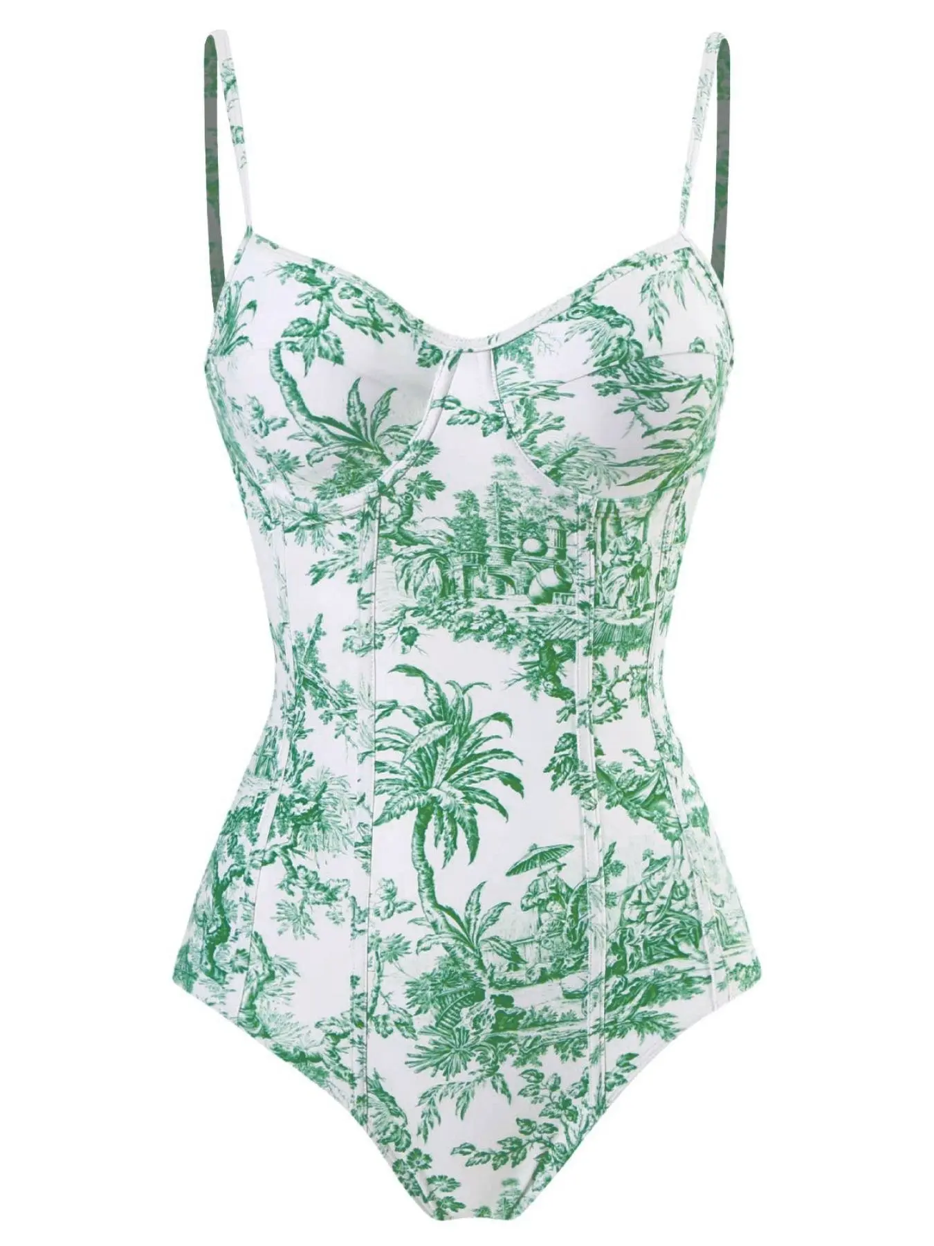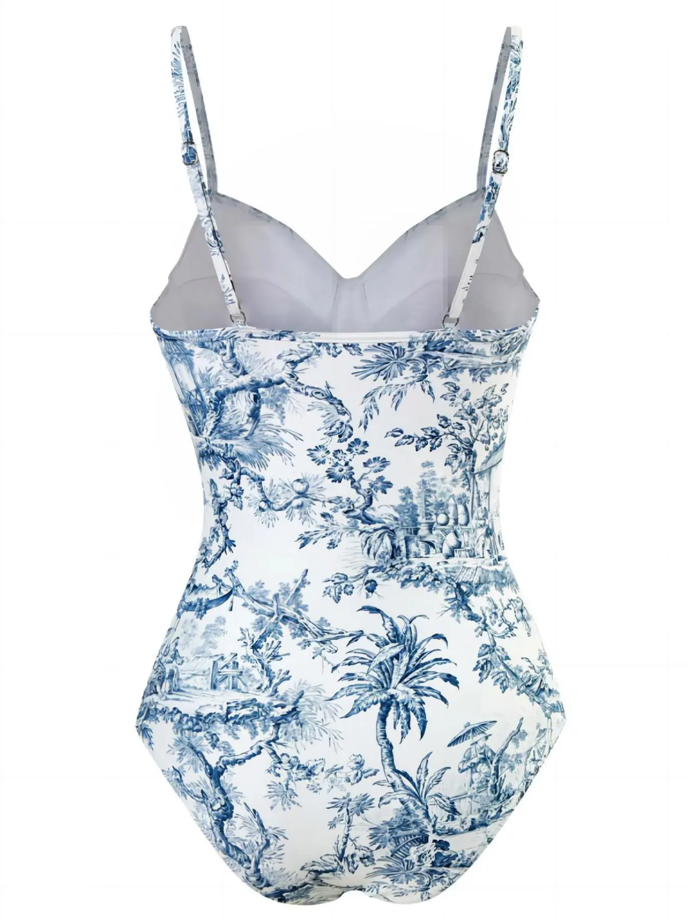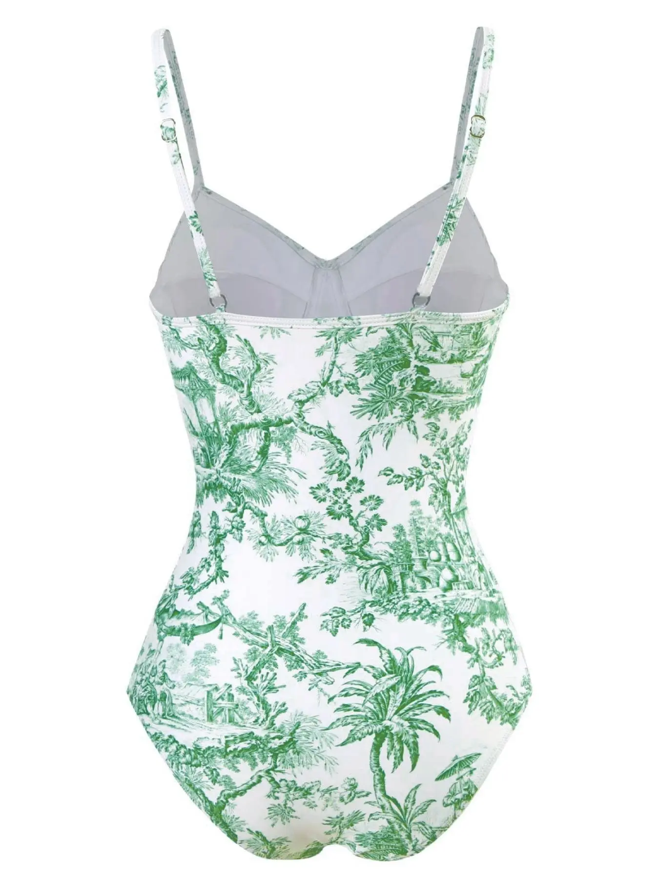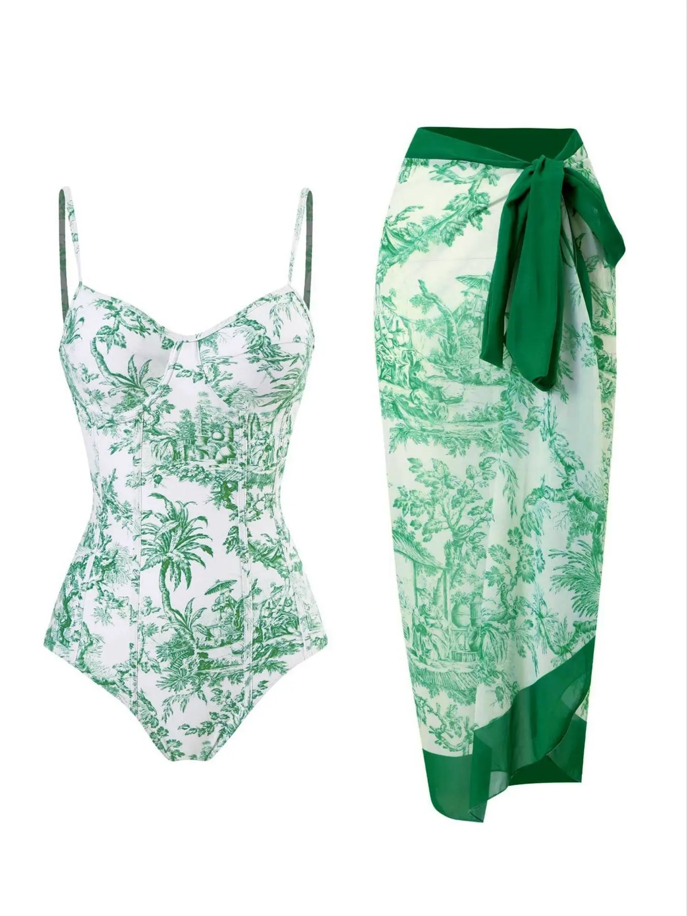 Women's Plants Print Cami Bodysuit & Contrast Mesh Skirt Set, Summer Clothes Women Elegant Spaghetti Backless Camisole & High Waist Knot Detail Skirt, Valentine's Day Gift