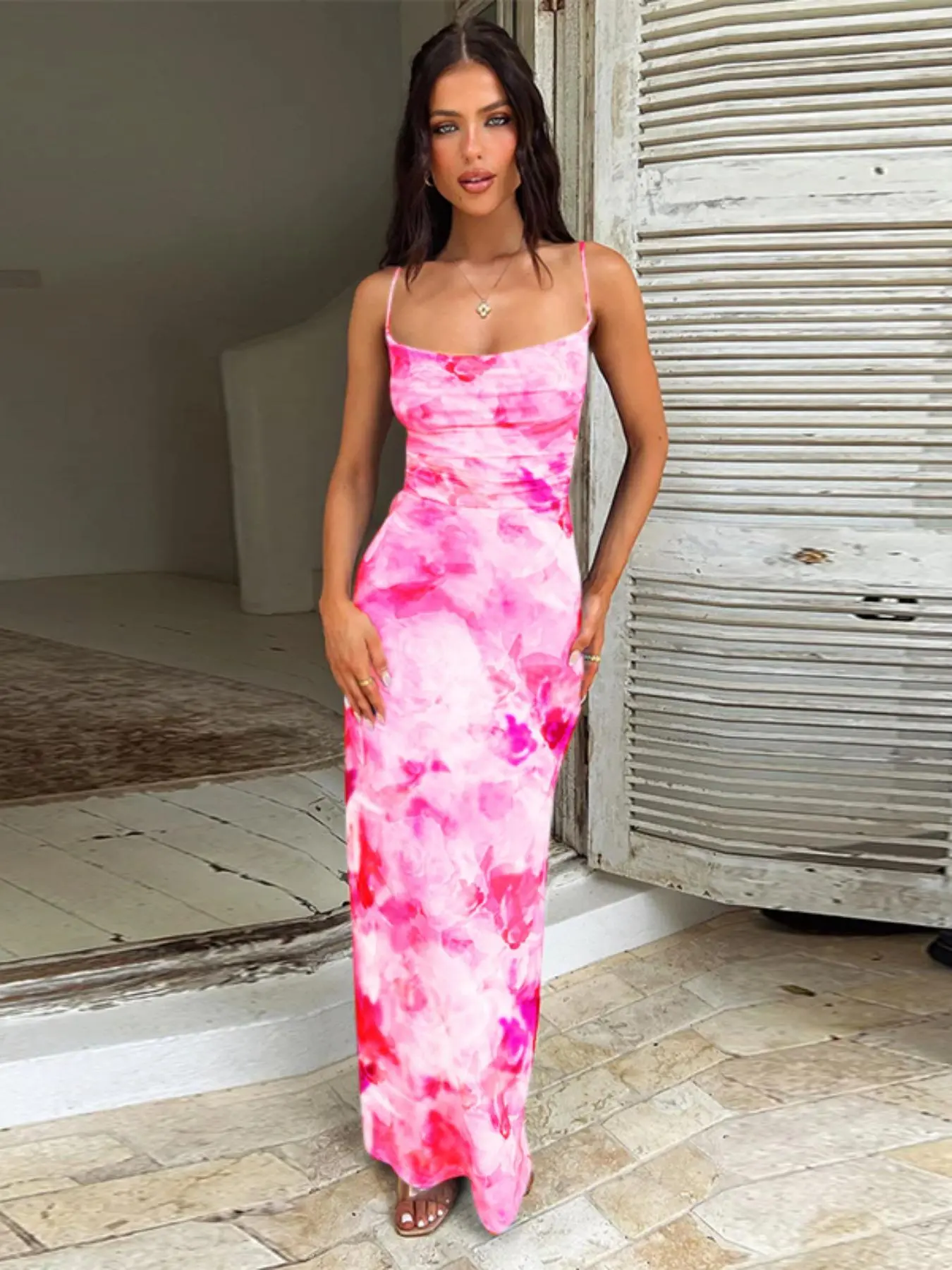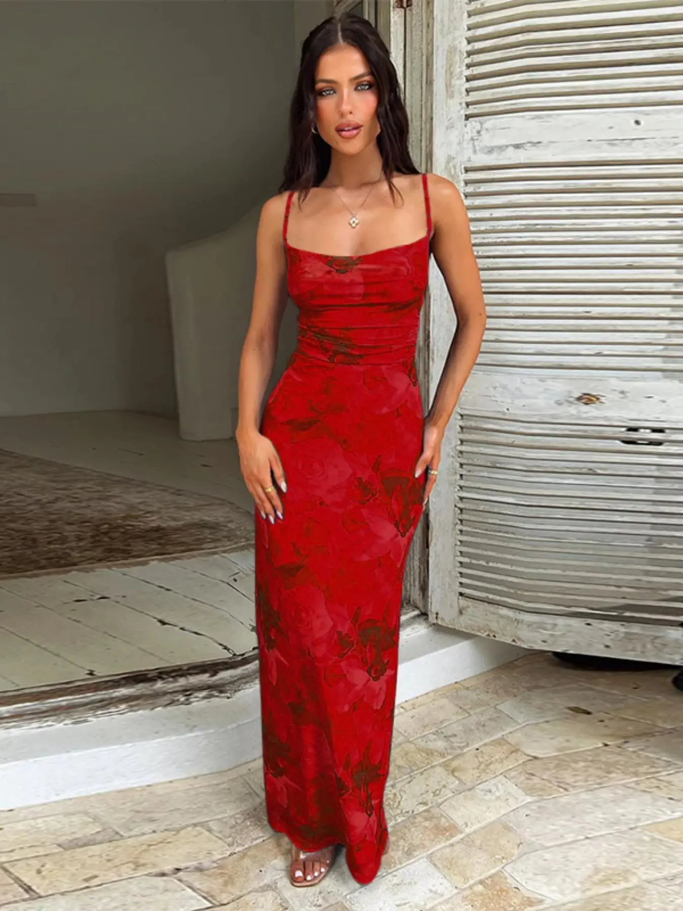 Hugs the body well. I love this dress. Im 5'6 1/2 163lbs it goes all the way to my feet