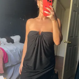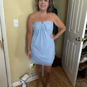 Dress is so shiek! Comfortable and easy to wear!! Top stays up! True to size!