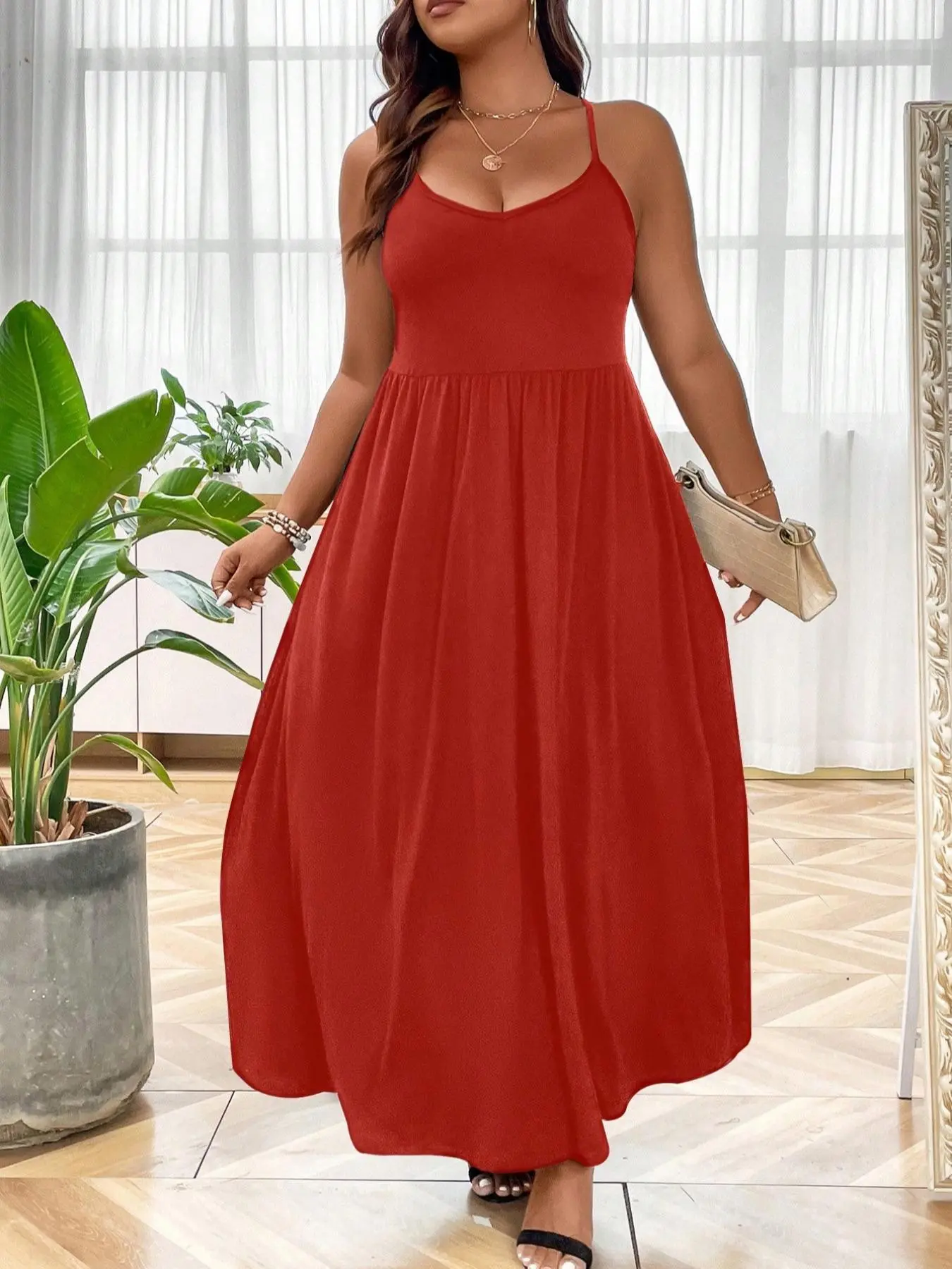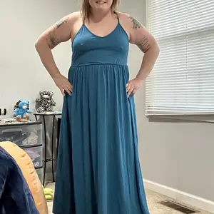 I love this dress so much I went back and bought 3 more colors. Very roomy and flowy. The back straps are adjustable. I am a size 26 and bought the 4x.