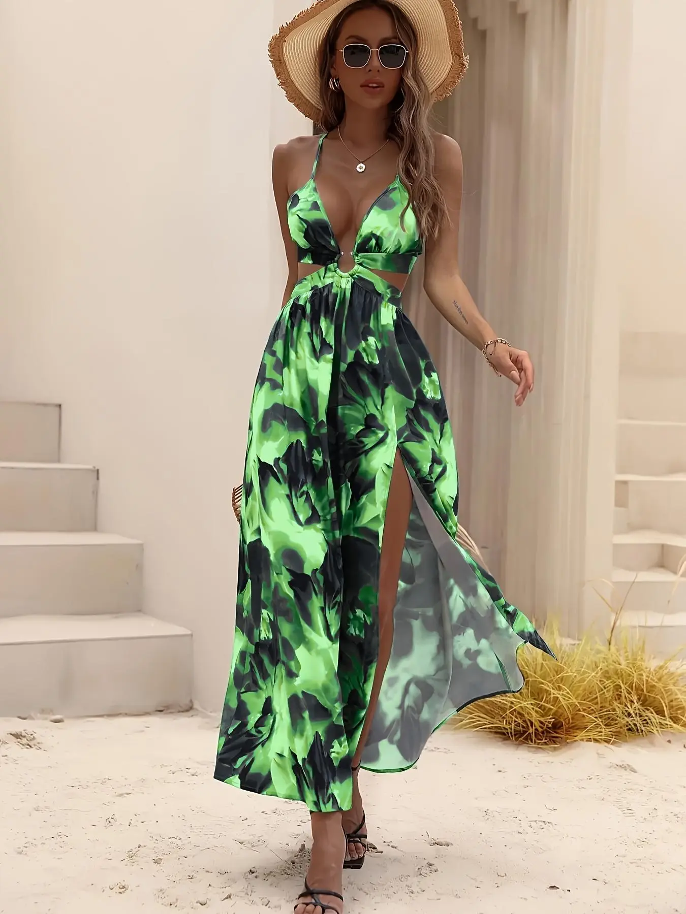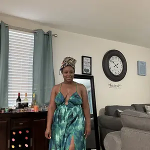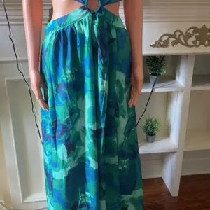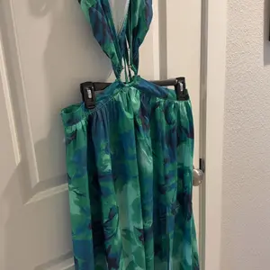 Stunning tie back Sundress in floral. 100% polyester and so comfortable yet elegant. A long zipper from the back waist down. Slit goes mid thigh. 5'5" 125lbs 36B
