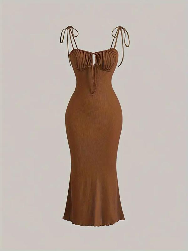 Elegant Women's Plain Ruched Tie Front Cami Dress, Sleeveless Tie Shoulder Design for Parties & Dates, Stylish Summer #brownminidress #ashleylaurendress #trendydress #dressdeal #adjustabledress #afterpartydress #champagnedress #denimdresses #cottonmaxidress #tiktokdresses