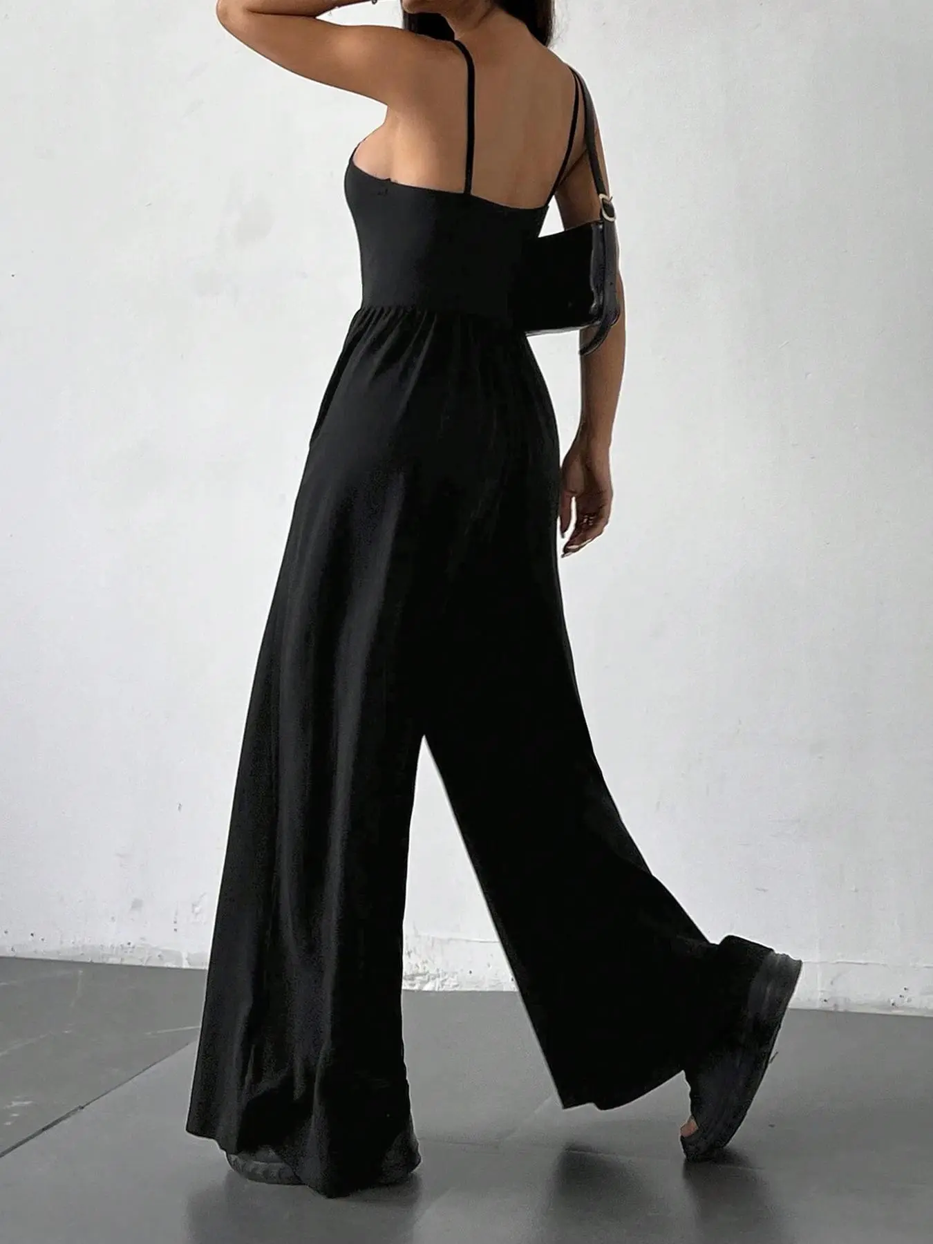 Women's Solid Color Cami Jumpsuit, Casual Comfy Wide Leg Jumpsuit for Summer, Women's Jumpsuit for Daily Wear
