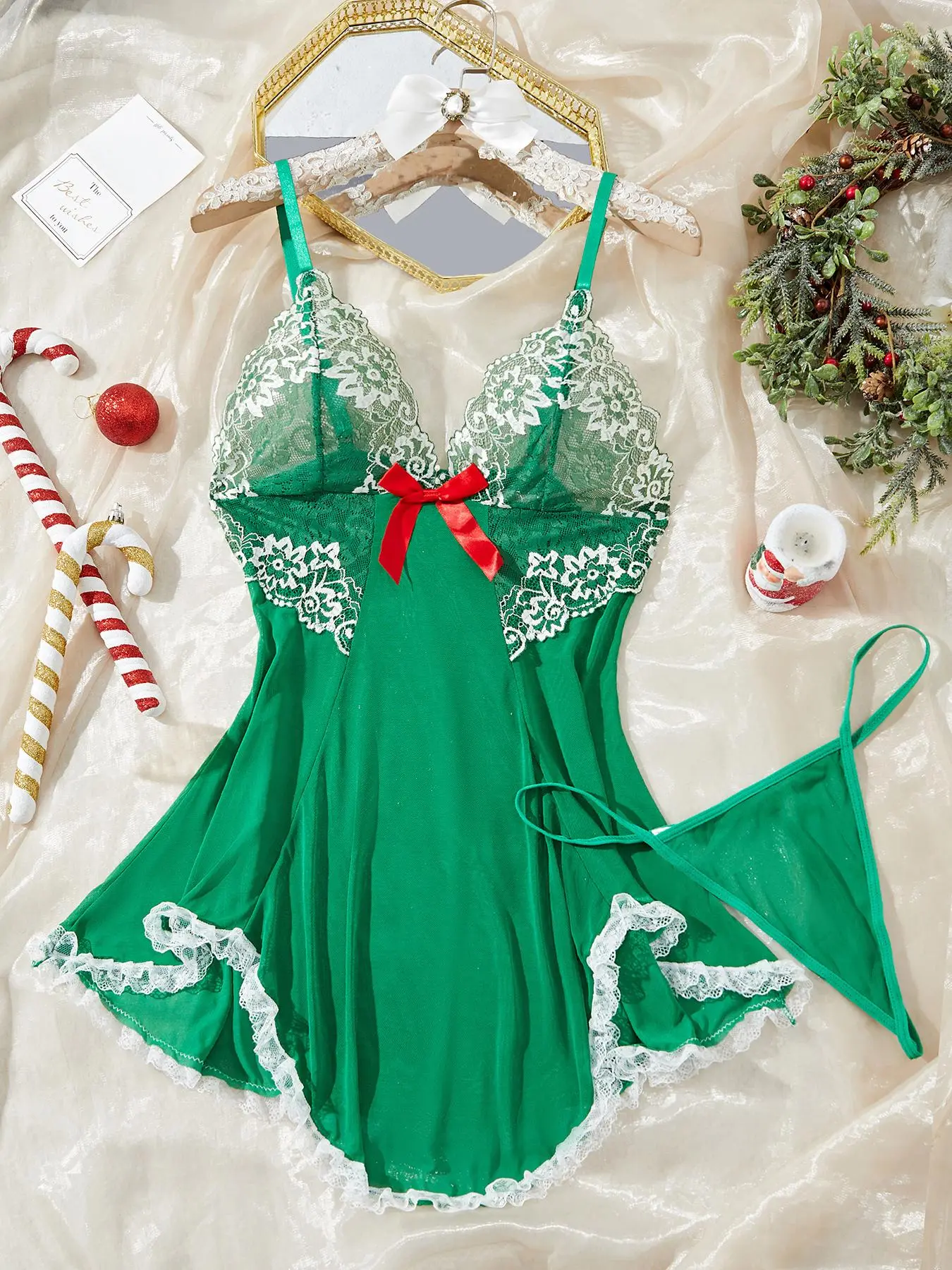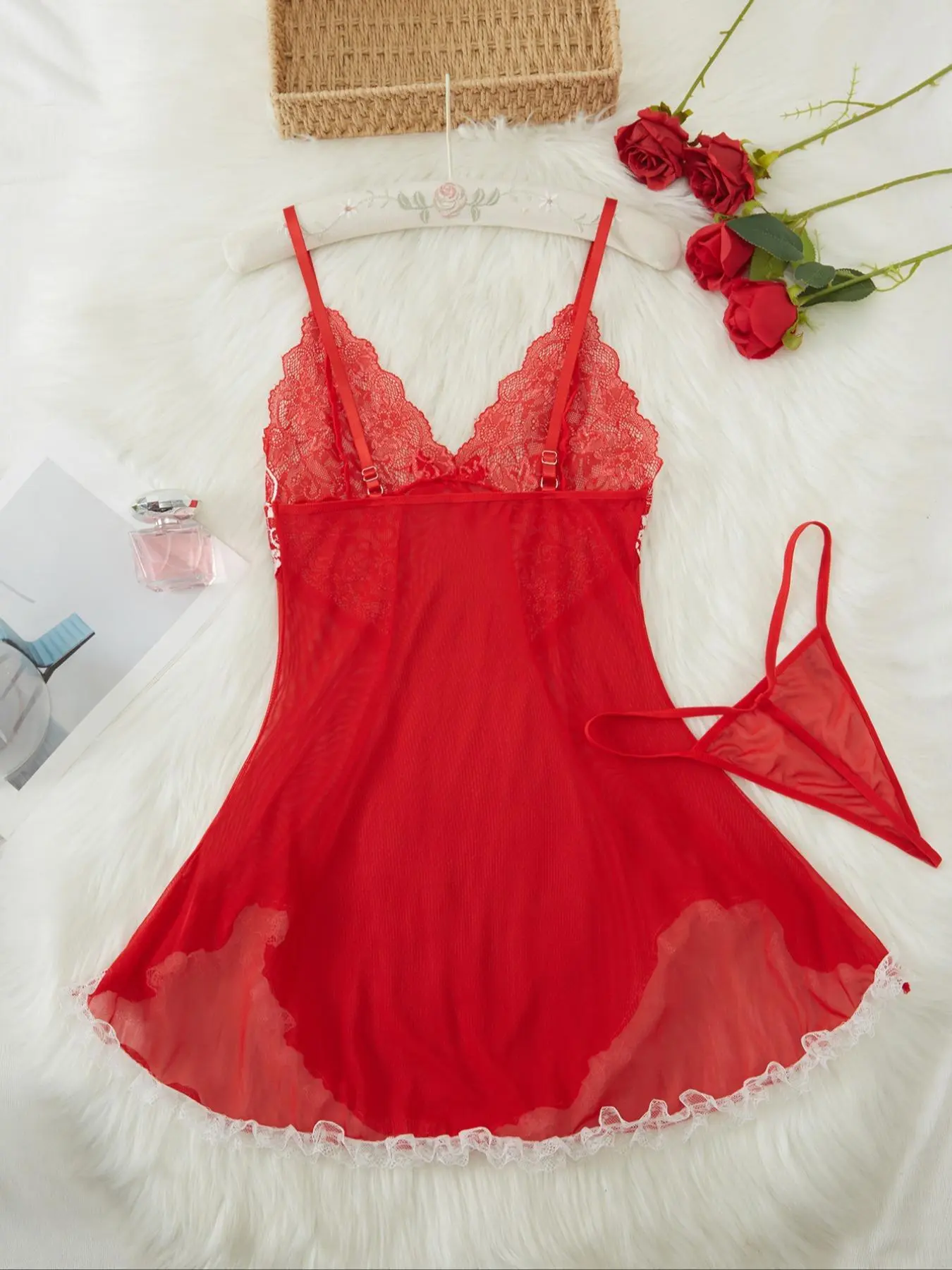 Love the gown but the panties are trash literally just sewn mesh that doesn't fit well