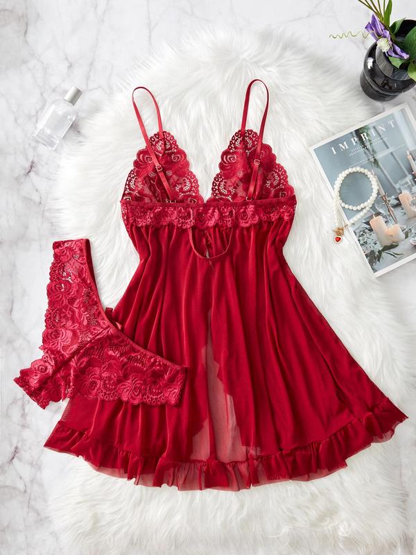 【Plus Size】Cami Nightdress & Panty Sexy Loungewear Set, Plus Size Women's Nightwear, Women's Sleepwear for Summer