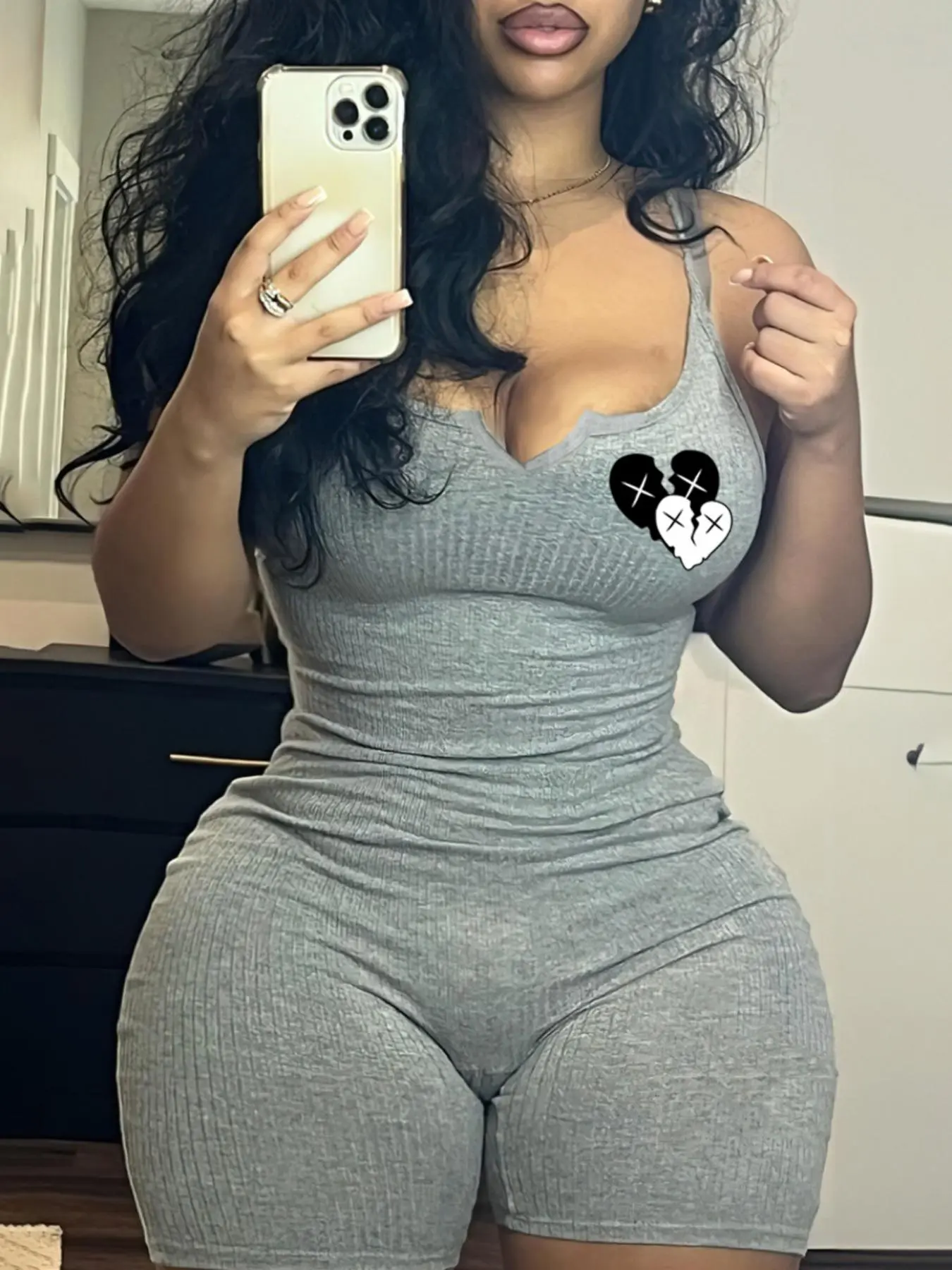 basic little romper. The videos and reviews I had seen said it had compression and snatches you up but it has no compression at all. The material is thin tshirt type material. Don't expect it to hold anything lol you can still very much see everything 😂