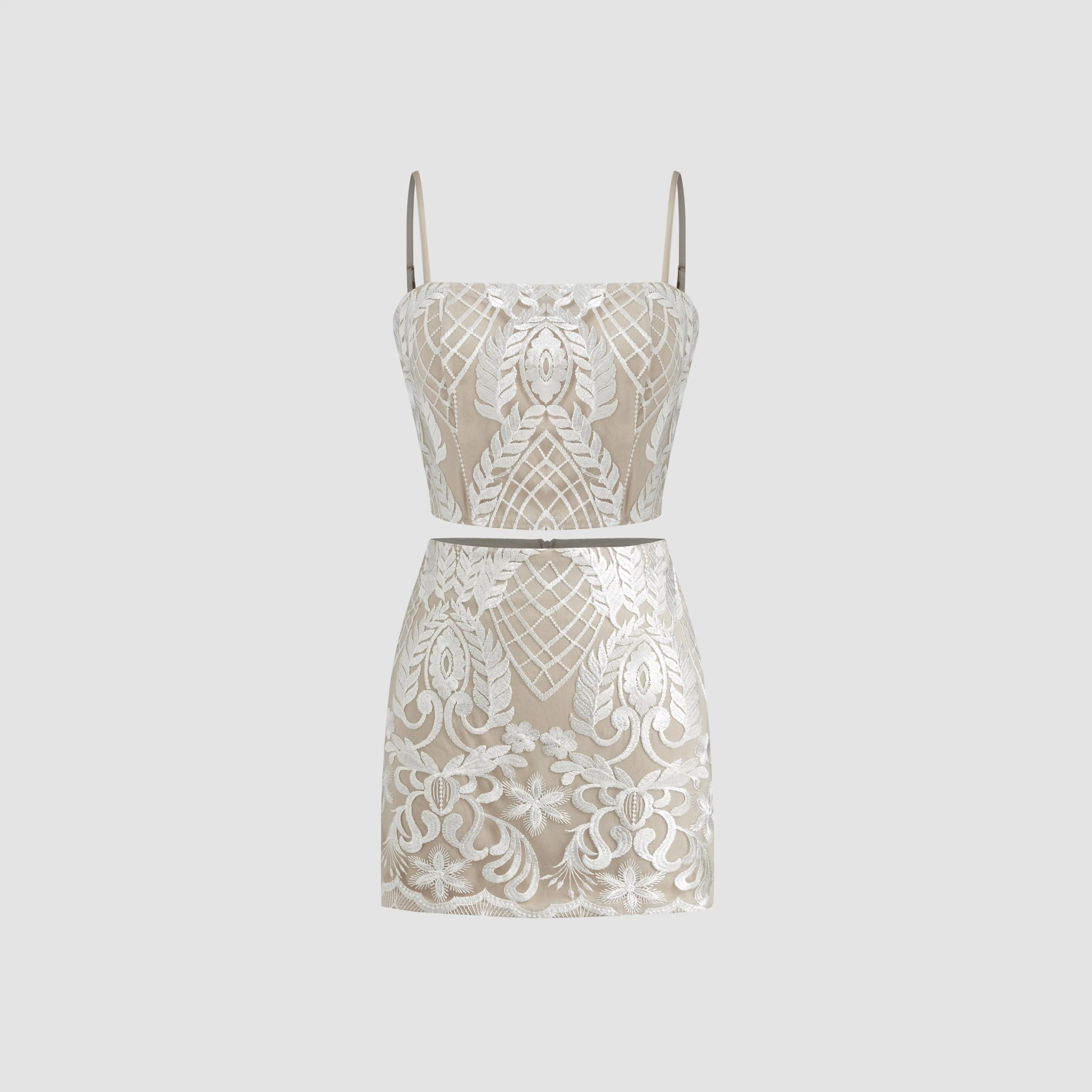 5. Cider [2 colors, size 2-10] Jacquard Square Neck Floral Crop Cami Top & High Rise Zipper Mini Skirt Set