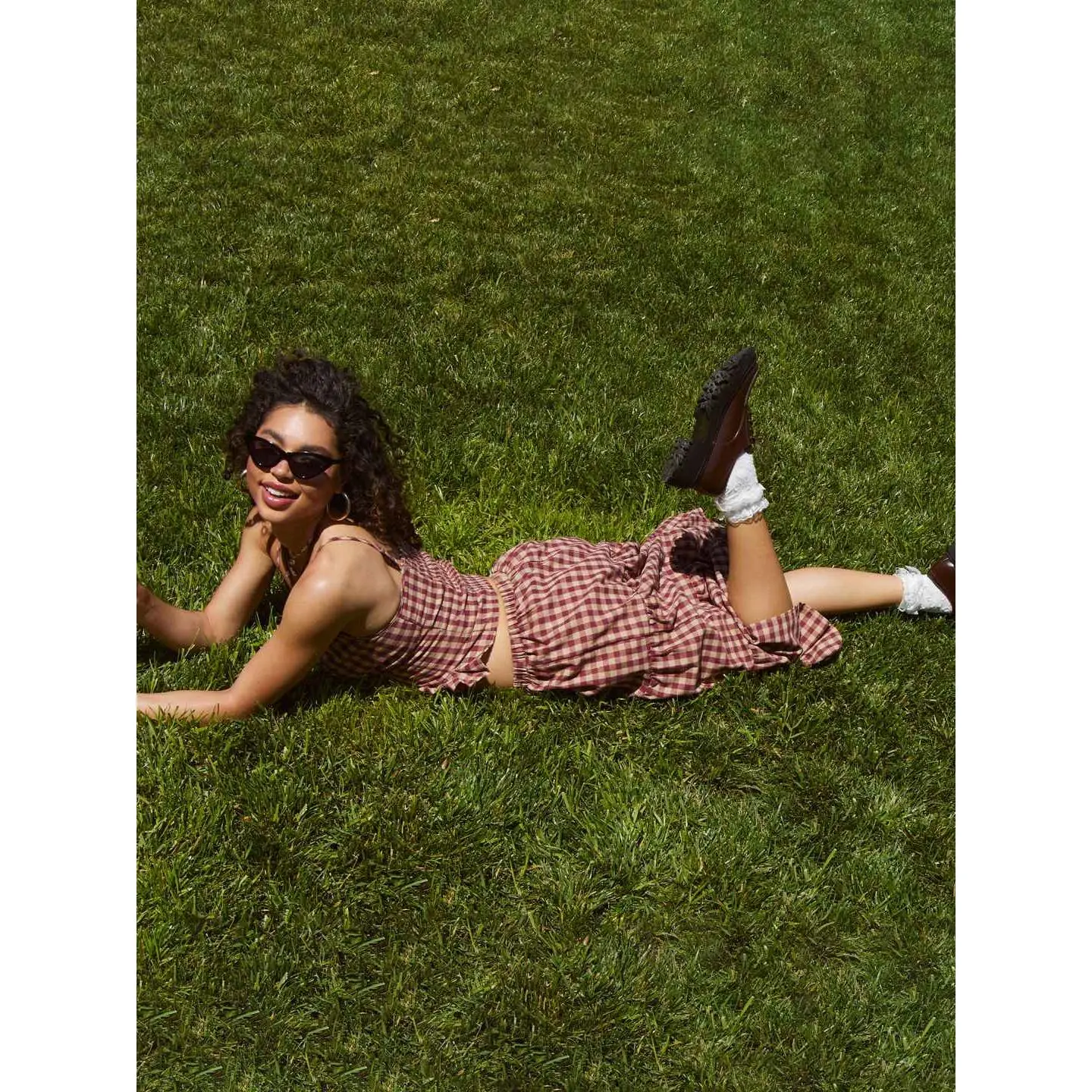 Cute piece! Fits exact to size, falls right above the shin so you can still see your socks/footwear. Thicker than I expected (so feels good quality) and looks good even without the top! Only criticism is the top part of the skirt billows out slightly so it makes you look a bit bigger.