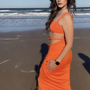 this is such a cute set! the twisted belt on the grey one fits much looser than orange. 5’4 135 size small