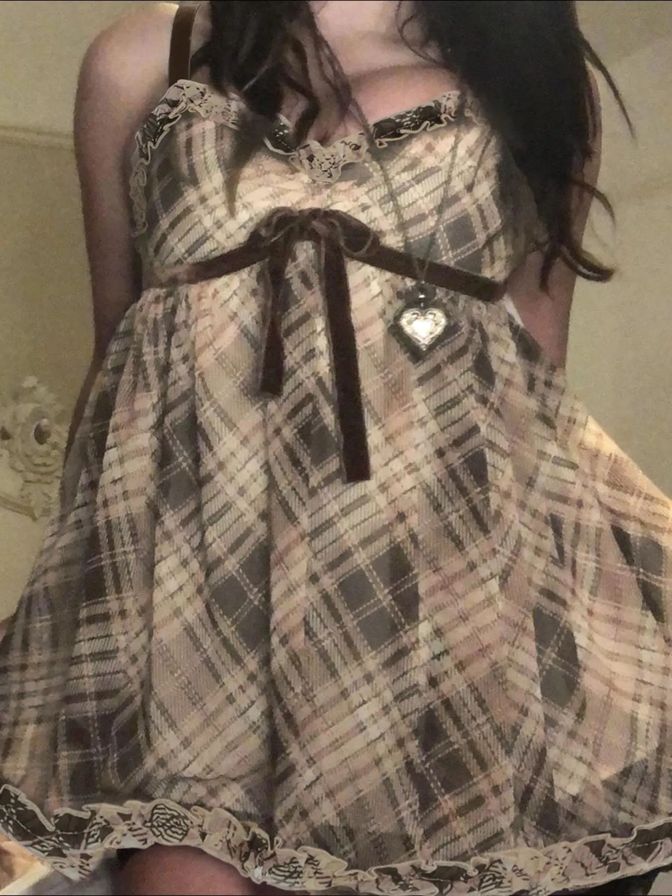 Super cute for a second I thought it was messed up, but it’s not. I wish the bow came already tied, and I wish the strap that went under the brests went all the way to the back other than that I’m a 34 b And I will say that does kind of sit high but nothing I can’t handle