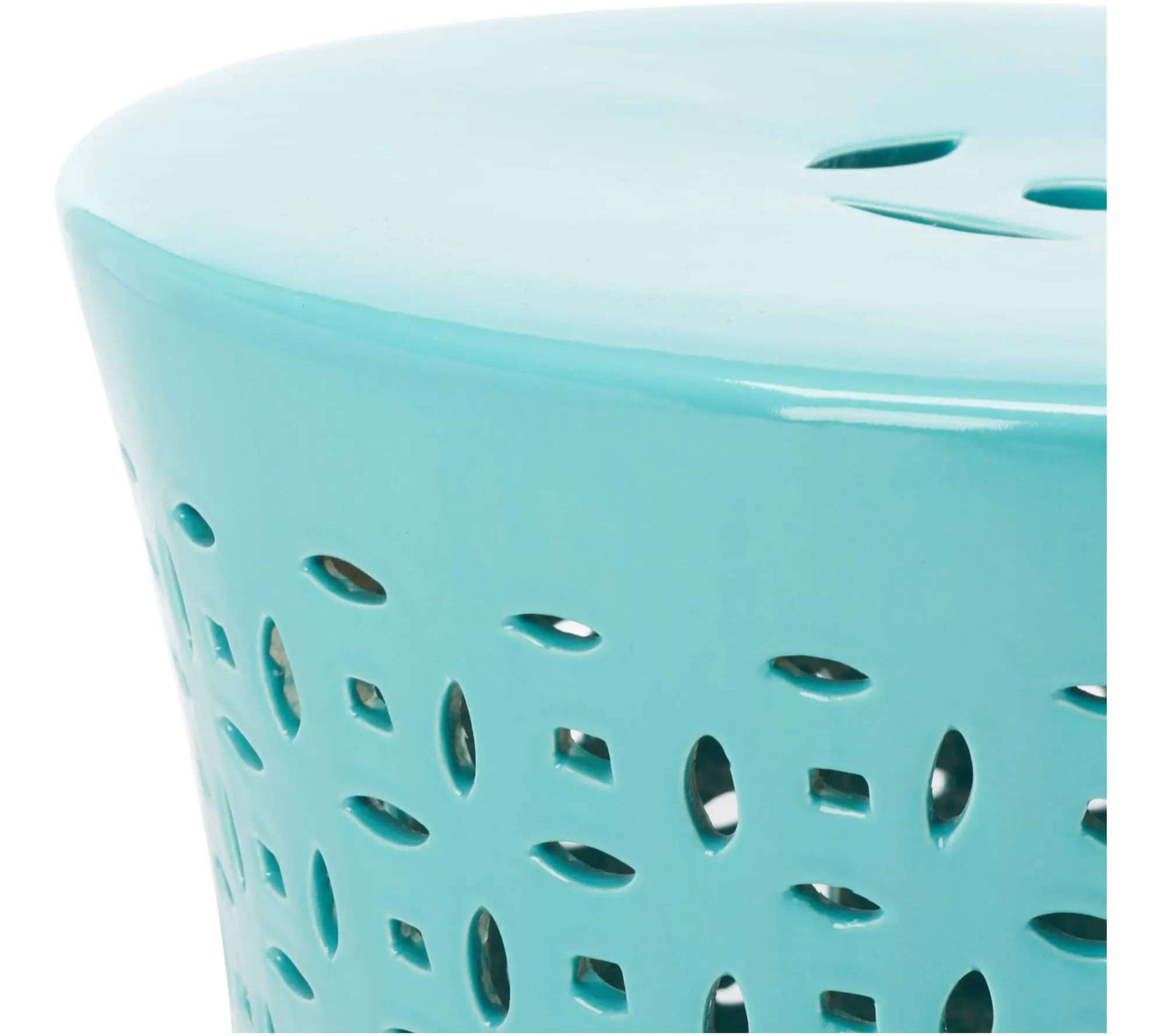 Enjoy relaxing afternoons in your favorite outdoor spot with this garden stool adding both style and function. Its glossy glazed ceramic surface and soft light blue hue bring a refreshing vibe to patios, porches, or indoor nooks, working beautifully as an accent table, extra seating, or eye-catching decor. From the Valerie Parr Hill Collection.
